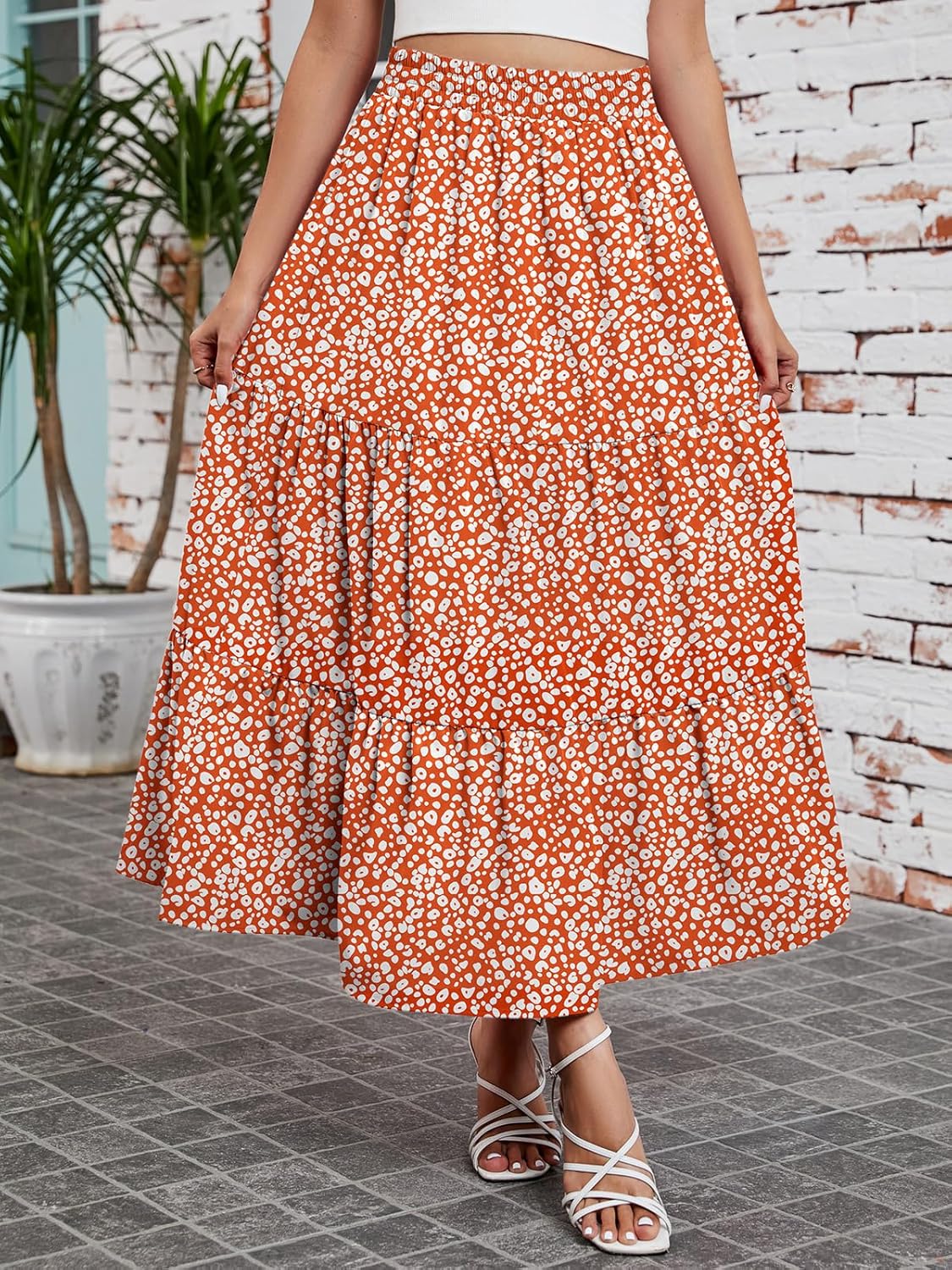 Arolina Maxi Skirt for Women Summer Boho Elastic High Waist Pleated A-Line Flowy Ruffle Swing Tiered Long Beach Skirt Dress