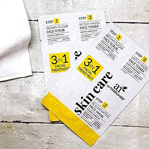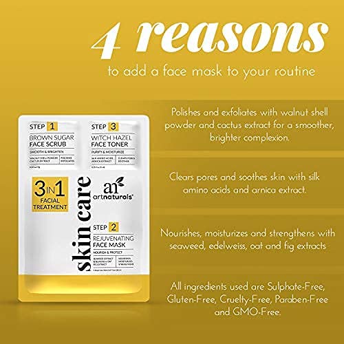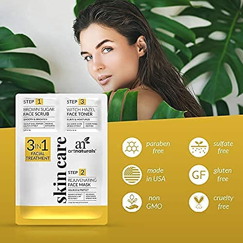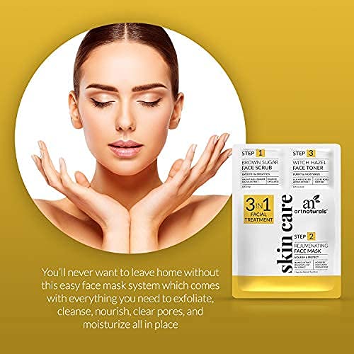 artnaturals Skin Care Face Mask Scrub & Toner (3 in 1 Set) Brown Sugar Scrub, Rejuvinating Facial Mask & Witch Hazel Toner -Exfoliating, Pore Cleansing & Moisturizing Treatment – All Skin Types