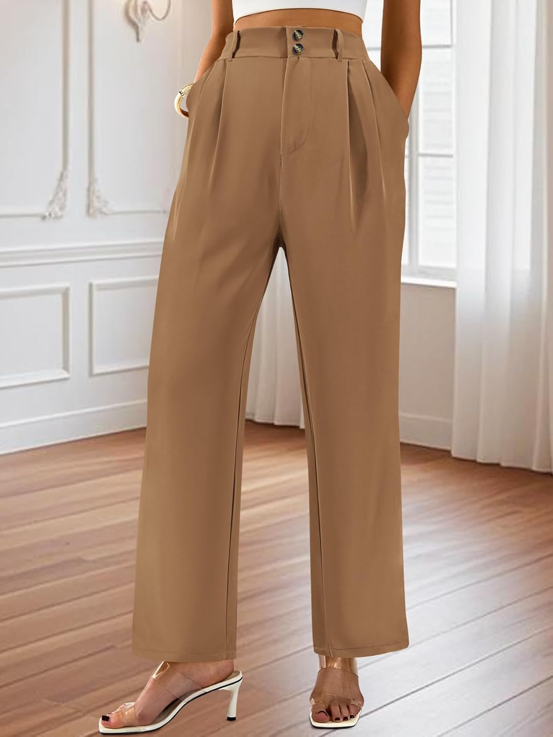 AUXDIO Womens Straight Leg Pants Casual High Waisted Stretchy Double Buttoned Trousers Work Business Dress Pant