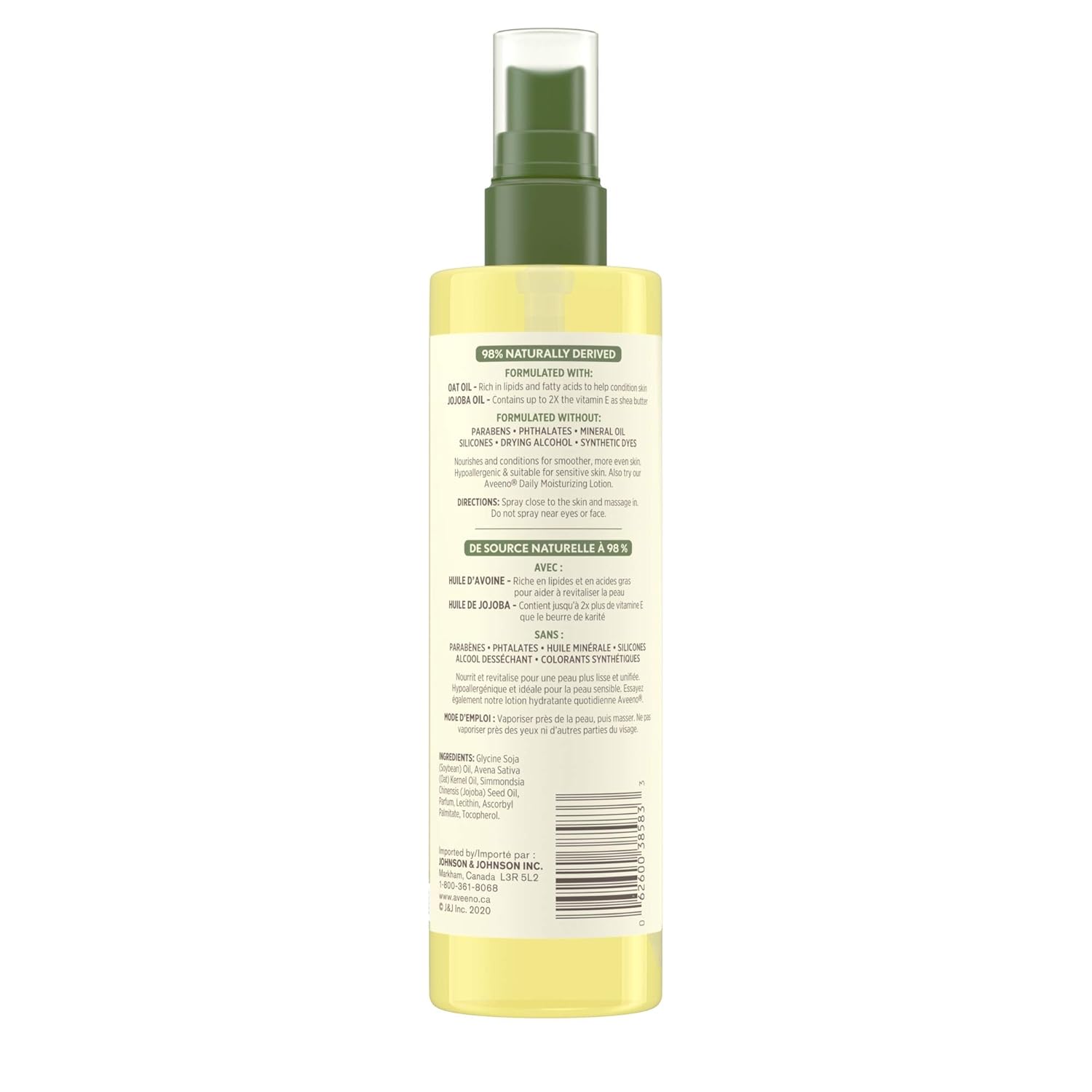 Aveeno Daily Moisturizing Oil Mist – Dry Skin, Sensitive Skin – Oat, Jojoba Oil – Hypoallergenic Body Oil – 200mL