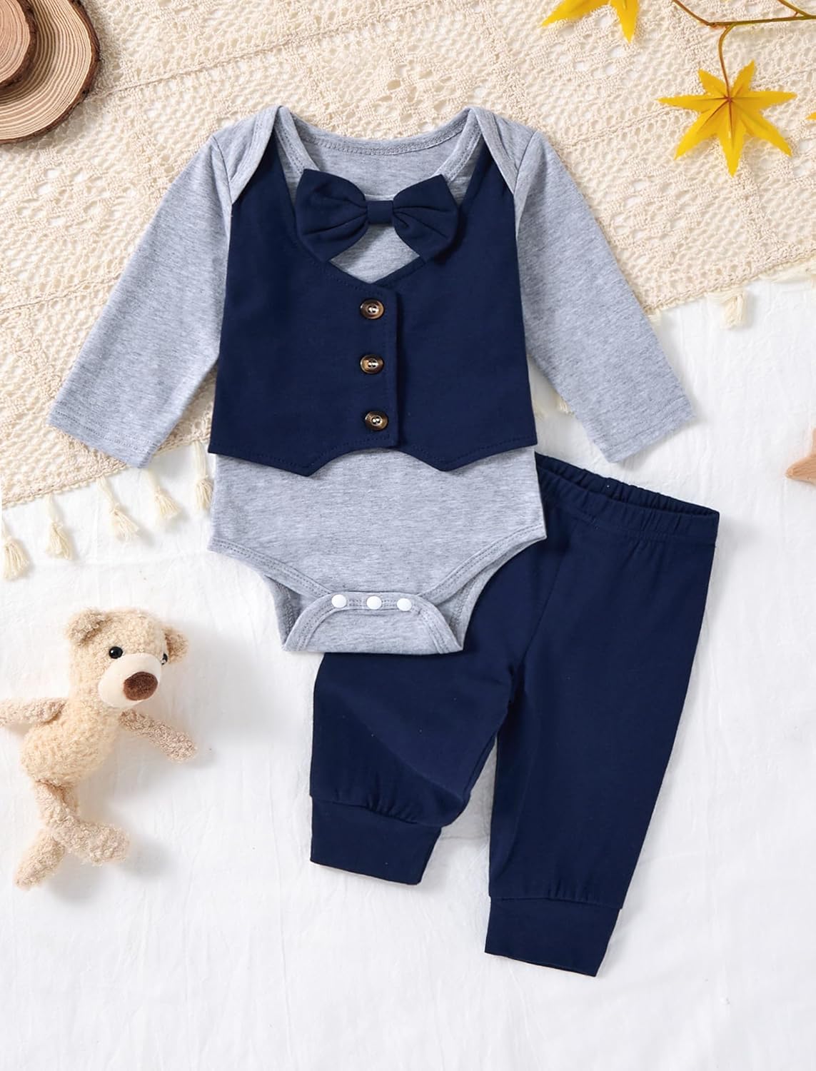 Baby Boy Clothes Gentleman Long Sleeve Romper Top and Pants Baby Boy Fall Winter Outfits 0-12M