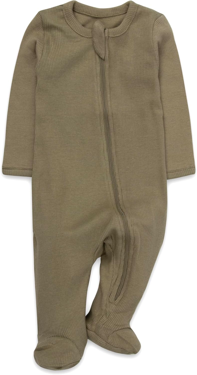 Baby Essentials Boys Footie Newborn Outfits, 4 Pack Patterned and Solid Long Sleeve Zip-Up Sleep and Play