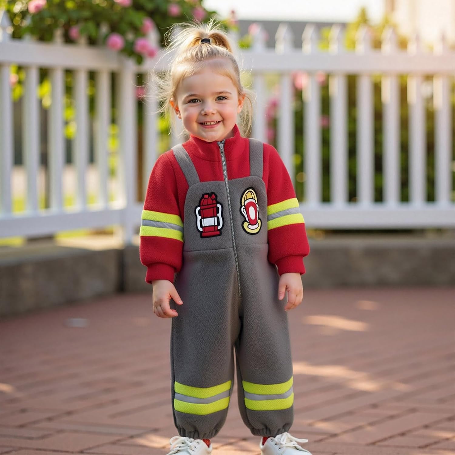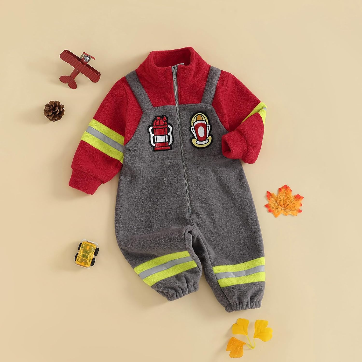 Baby Firefighter Outfit Toddler Boy Girl Fireman Costume Coral Fleece Romper Halloween Outfits Cosplay Warm Clothes