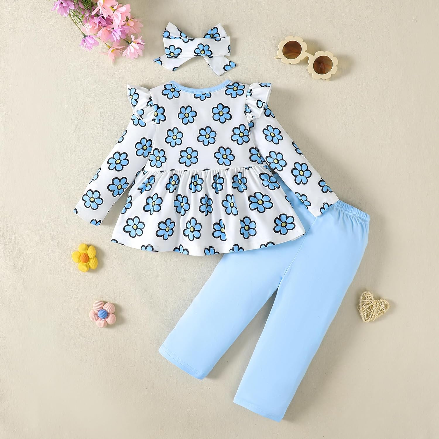 Baby Girl Clothes Outfits Ruffle Sleeve Shirt Top and Pants Toddler 3 Piece Set Fall Winter