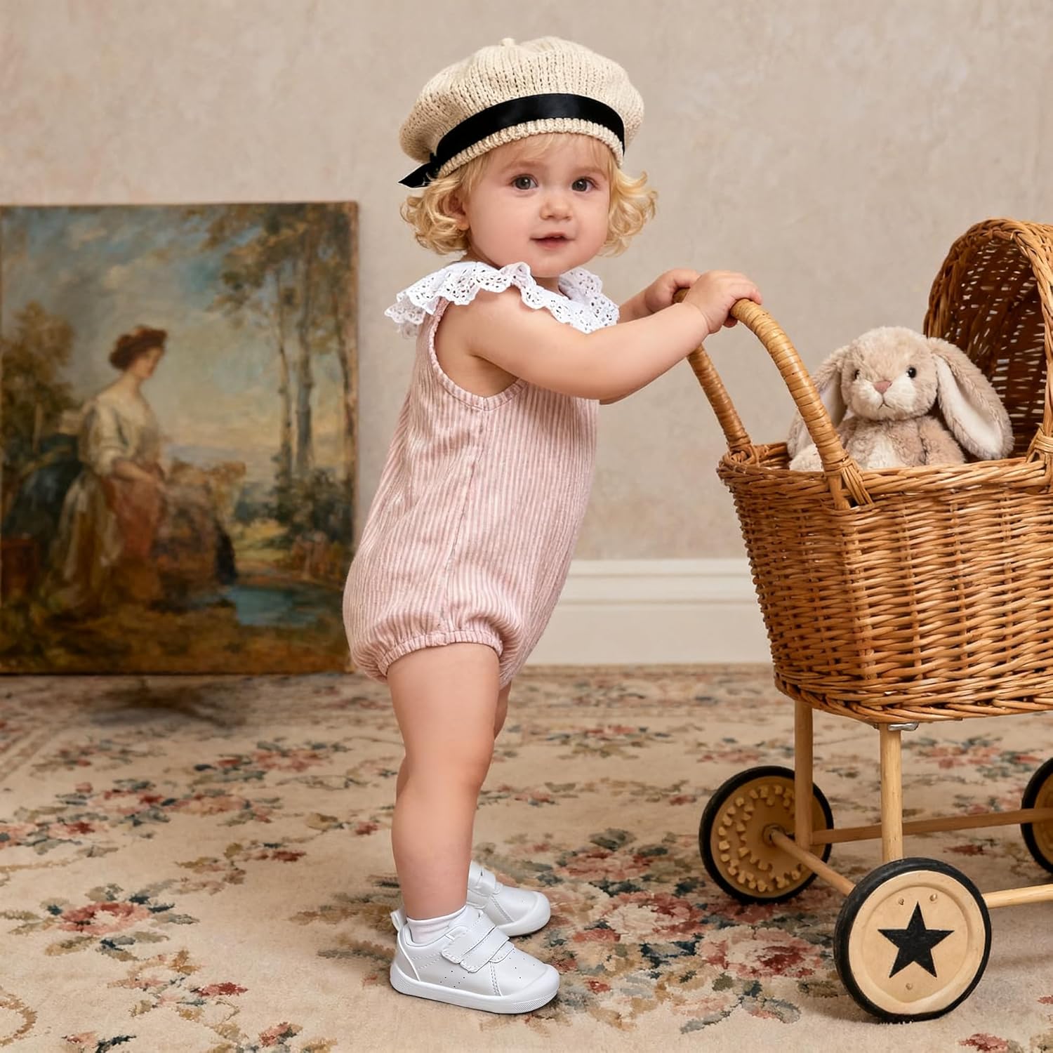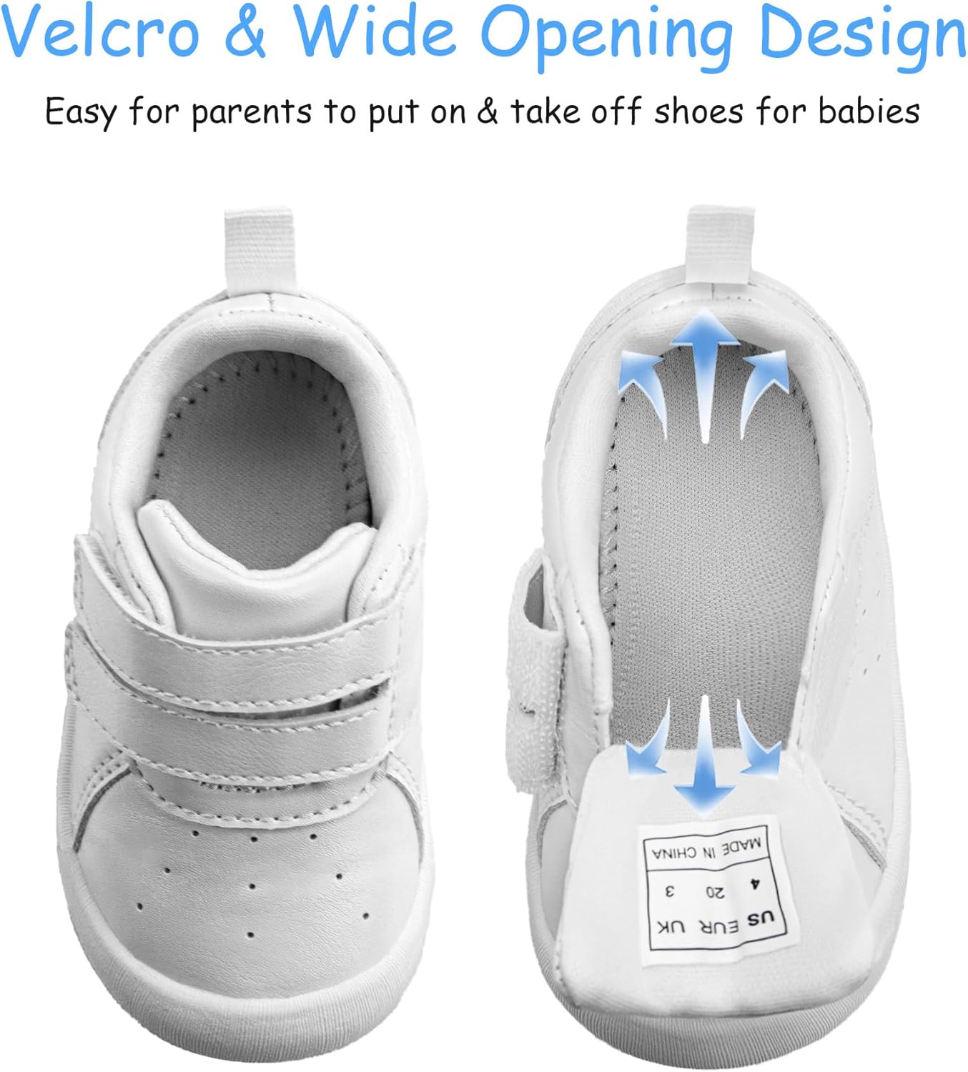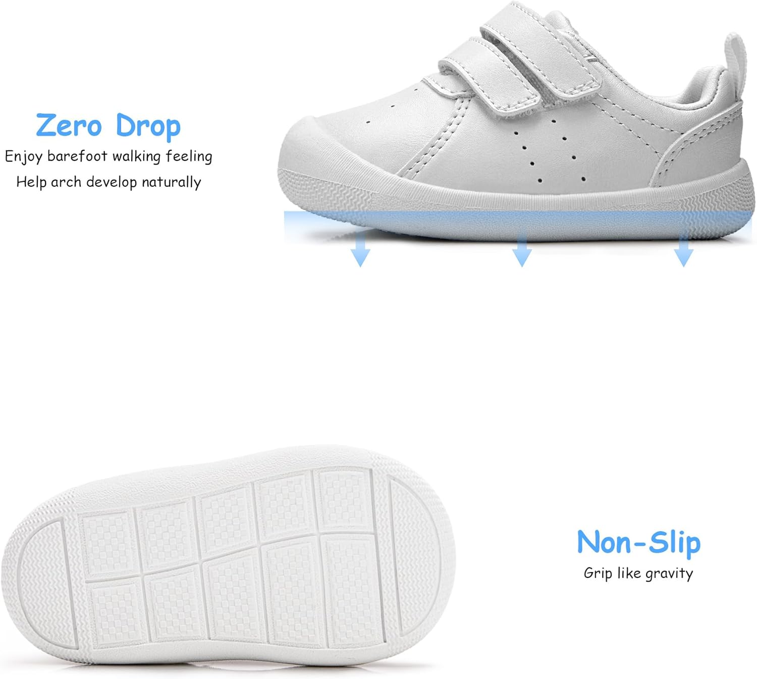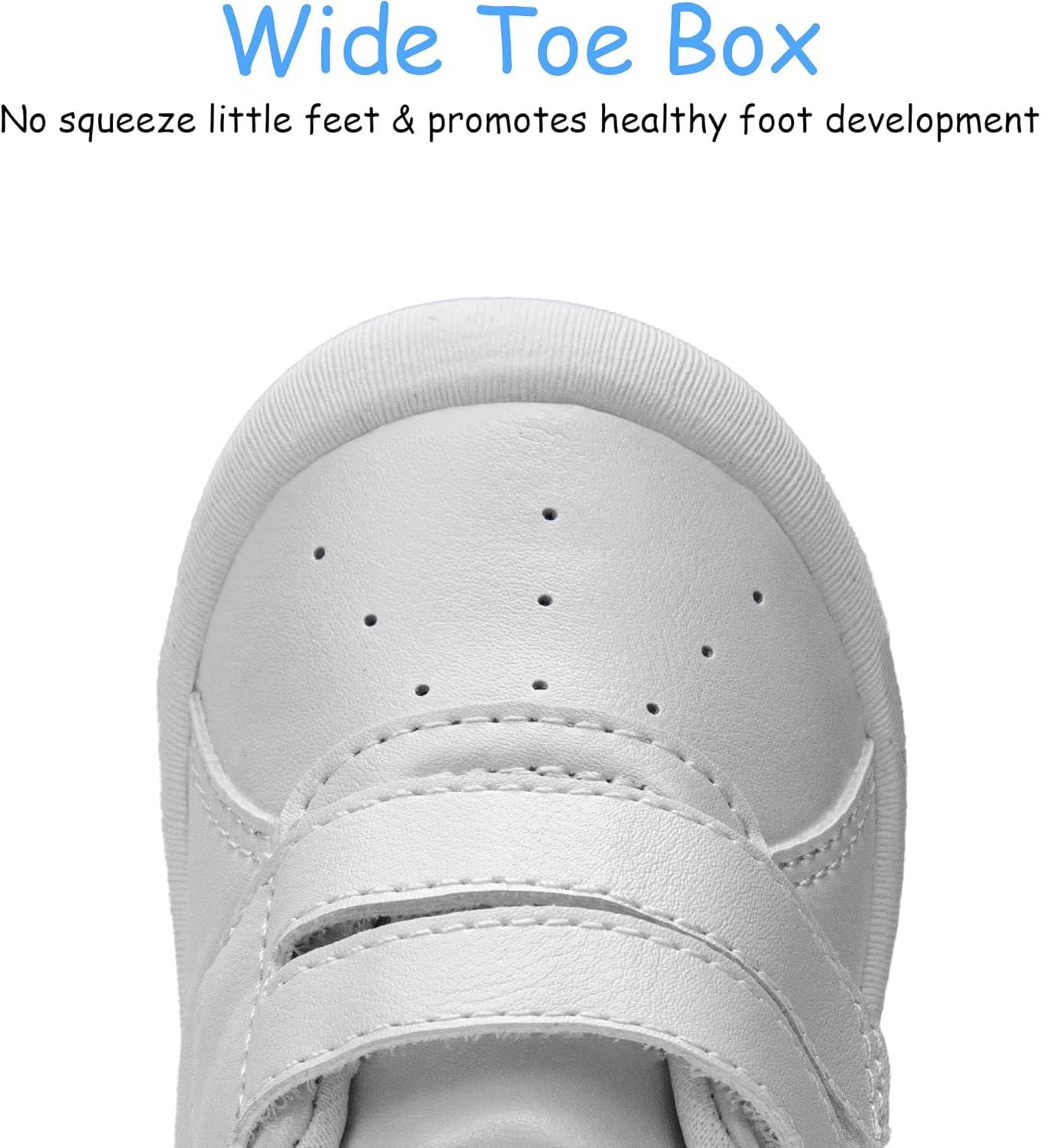 Baby Shoes Wide Toe Box Zero Drop Infant First Walking Shoes,Toe Protection,PU Leather,Lightweight Nonslip Toddler Sneakers for Boys Girls 6 12 18 24 Months