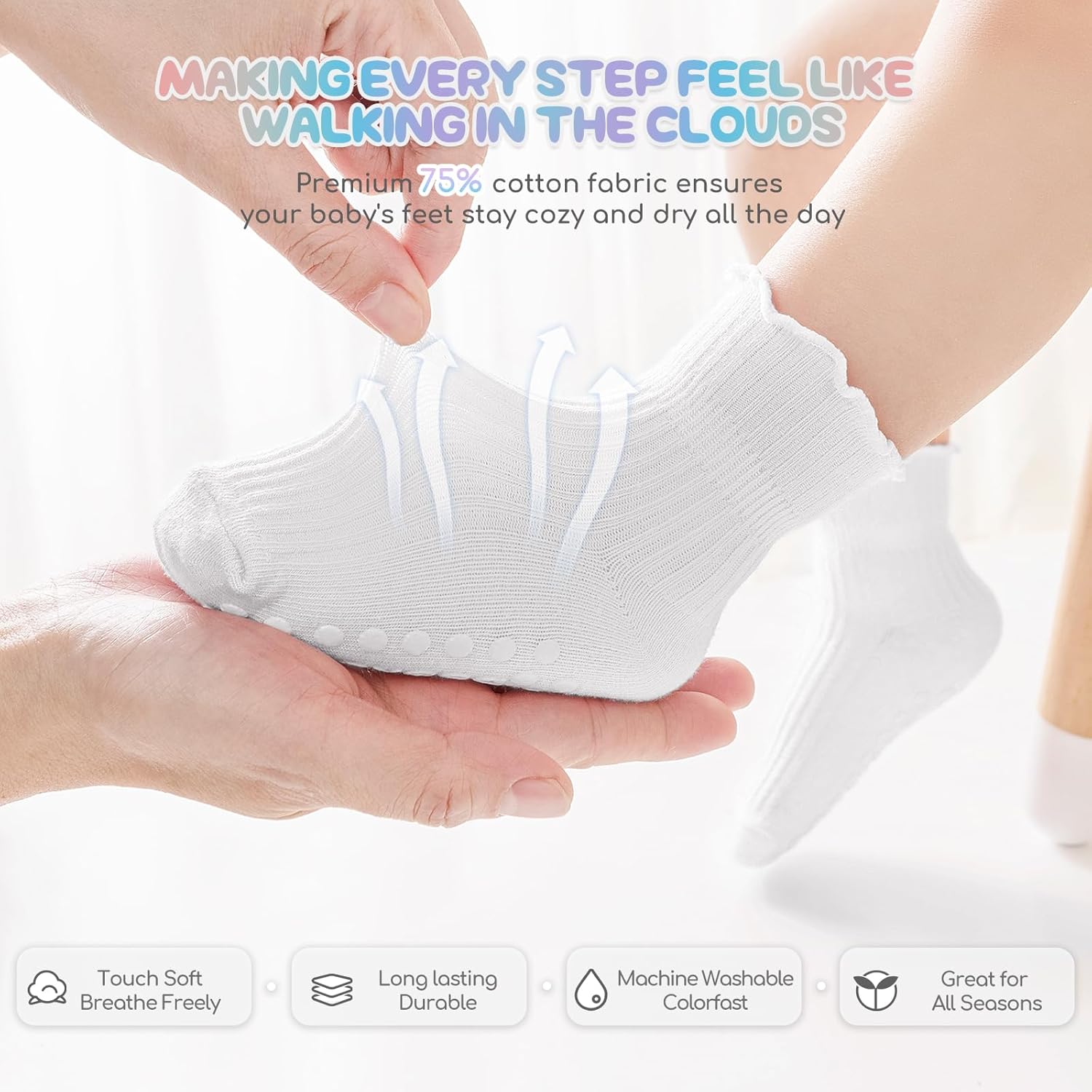 Baby Toddler Girls Socks Grip Ruffle Non Slip Girls Cotton 12 Pack Socks for Kids Cute Ankle 6M-7Years