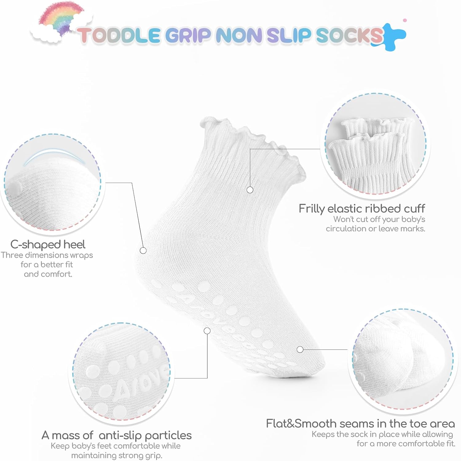 Aroveea Baby Toddler Girl Frilly Ruffle Socks with Grips