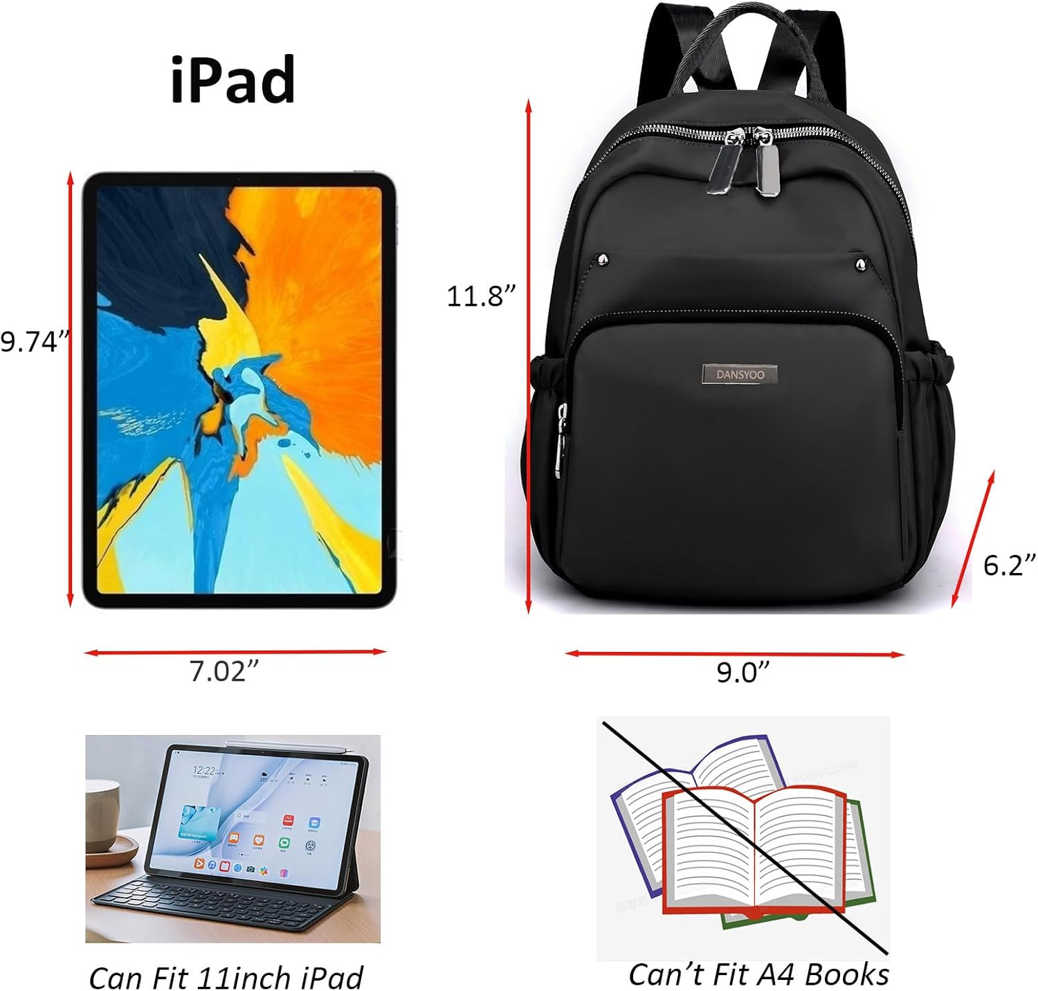 【ABOUT SIZE】Small travel backpack dimension:11.8H*9L*6.2W inch, weight: 1.1 LBS, fits iPad Pro up to 11 inches, not for A4 books.