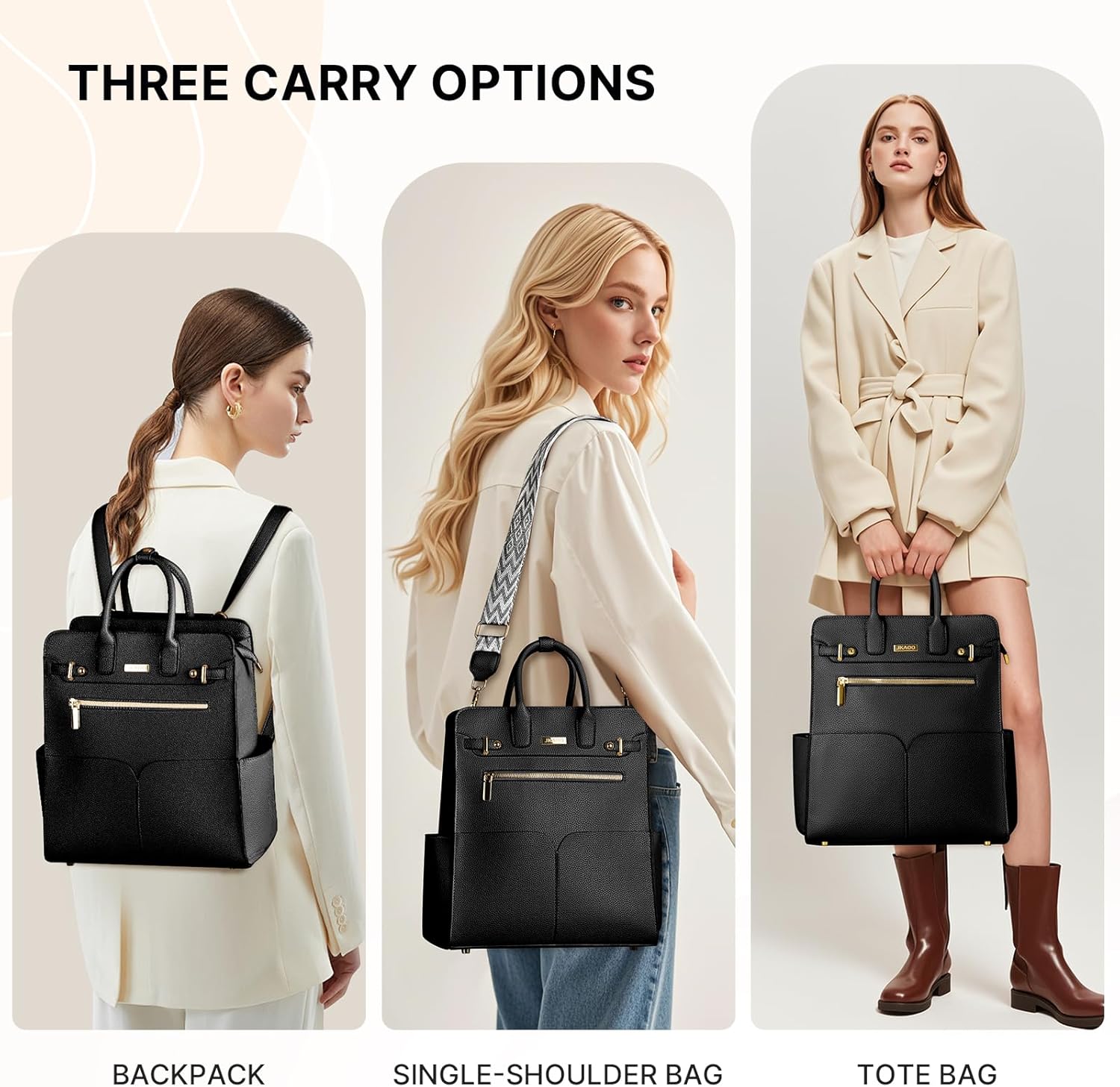 【Versatile Design】This PU leather backpack blends premium materials with a sleek pocket design for a minimalist, elegant look. The waterproof surface protects your belongings and is easy to clean. As a convertible bag, it transitions effortlessly between casual and refined settings. Whether used as a fashion ladies backpack purse or tote, it balances elegance and practicality