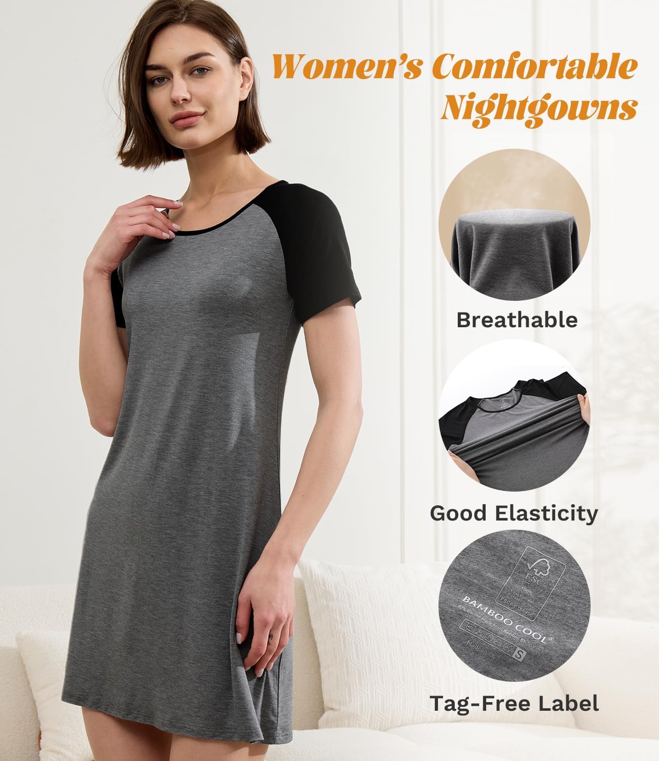 BAMBOO COOL Womens Nightgown Soft Sleepwear Short Sleeve Pajamas Lounge Sleep Dress Comfy Nightshirt for Ladies