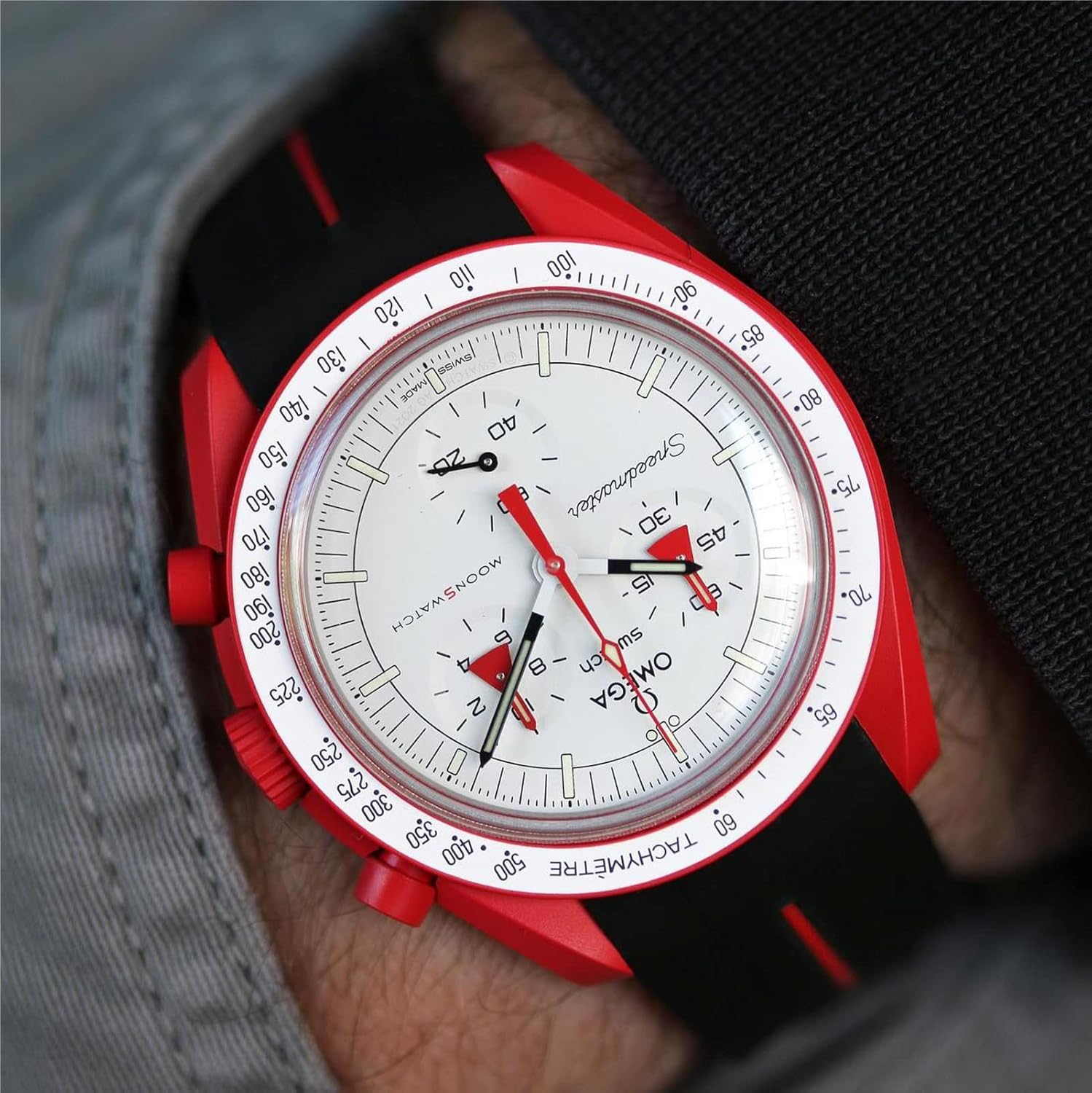 With its unique seamless curved design, this watch strap adds a touch of playfulness and creativity to your Omega Swatch Moonswatch Series timeUniversal Watch Strap for Omega Swatch Moonswatch Series – Suitable for Mercury, Venus, Earth, Mars, Jupiter, Saturn, Uranus, Neptune, Pluto, Sun, and MoonDiscover More Exciting Combinations for Your Omega Swatch Moonswatch Series