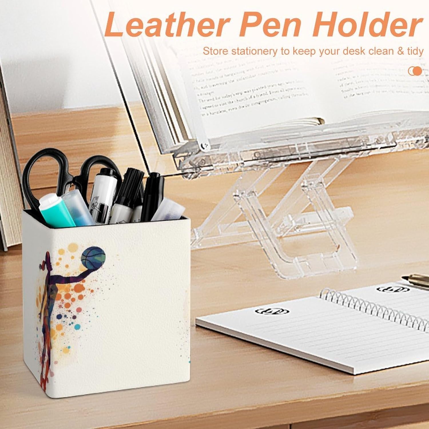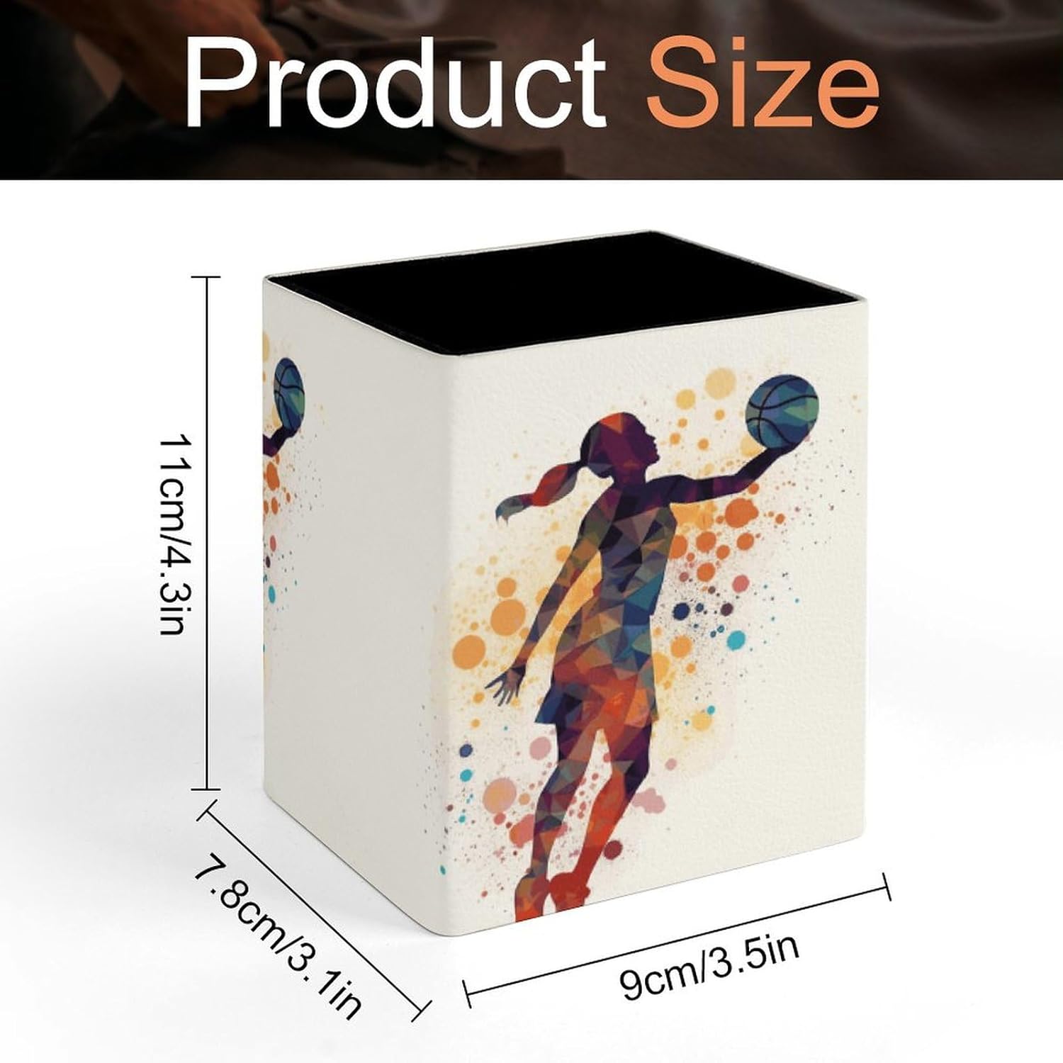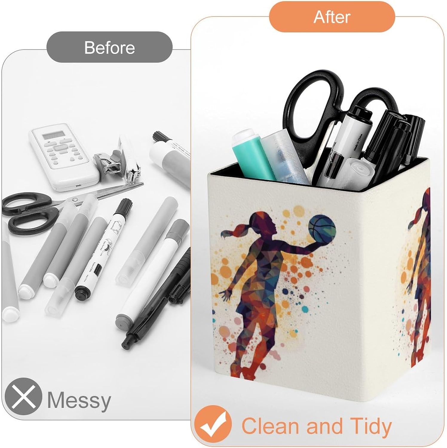 Basketball Women Pattern Pencil Holder Waterproof PU Pen Cup Holders Women Makeup Brush Holder Desktop Pen Organizer for Office Desk Accessories