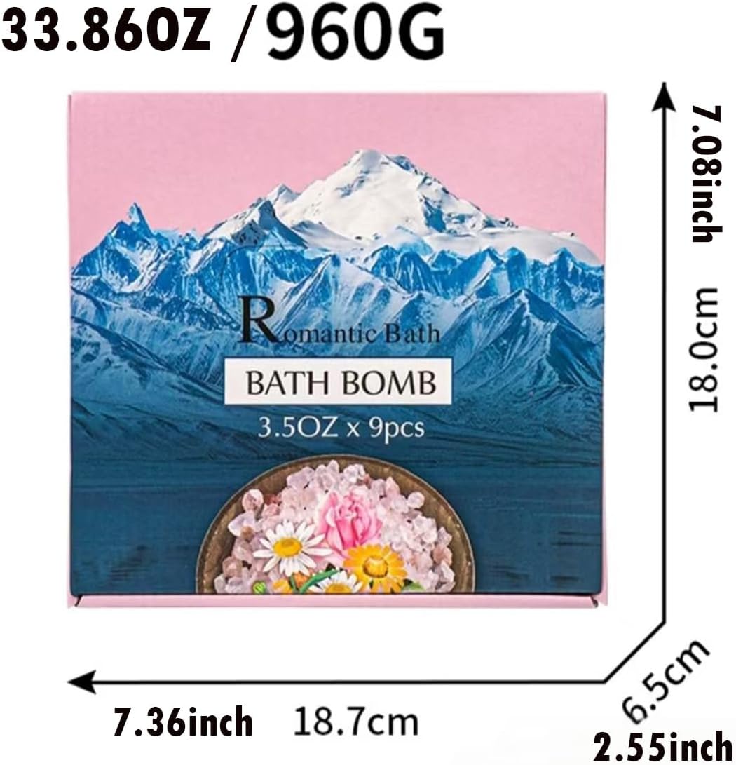 Bath Bomb Gift Set 9 – Valentine’s Day Gift for Ladies, Relaxation Essentials, Bath Bomb, Immersion in Himalayan Sea Salt