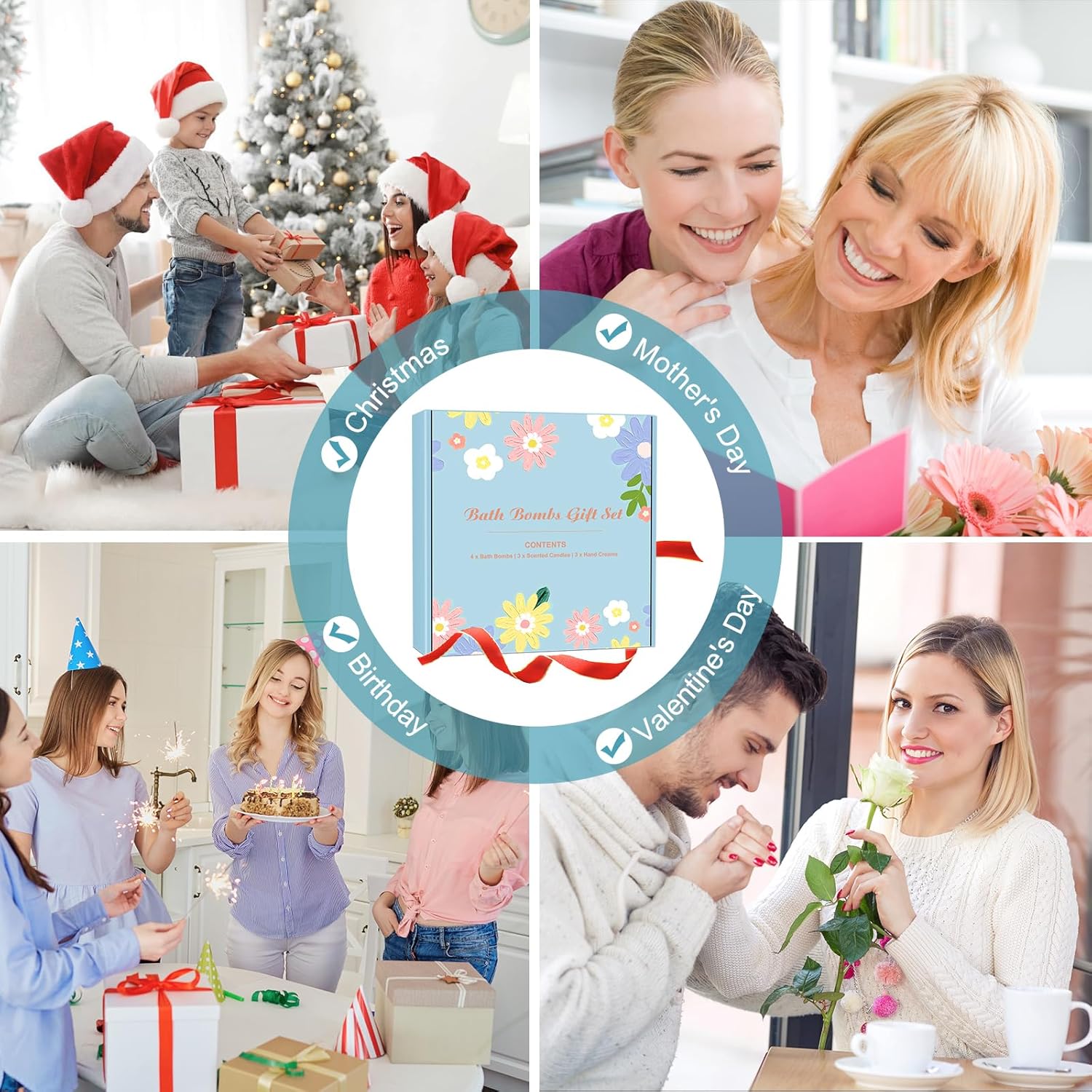 Perfect Gifts for Various Scenarios: This practical and beautiful bath bombs for women gift sets is on most wish list. Perfect gift ideas for birthdays, Christmas, Anniversary, Thanksgiving, Valentine’s Day, party favors, Mother’s, or any special occasion. Perfect as Christmas gifts for women, Christmas gifts for mom, bulk christmas gifts for coworkers, Christmas gifts for teens, christmas gifts for wife, Christmas gifts for daughter, or any woman you love.
