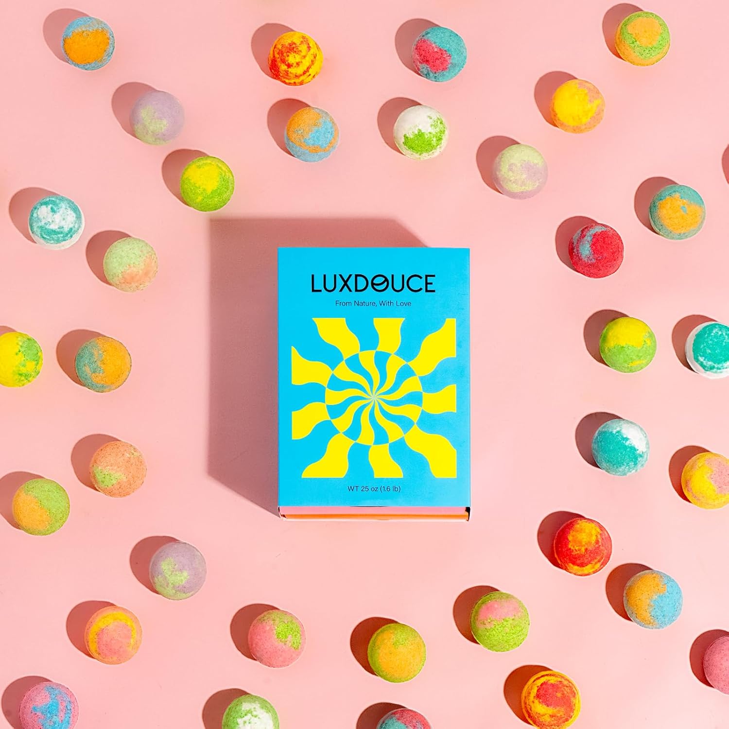 FRAGRANCE FANTASY: Dive into a world of fragrance with LUXDOUCE 24 Pack Bath Bombs, featuring two enchanting series. The Floral Euphoria Series includes 12 bath bombs, offering 6 varied botanical fragrances for a floral experience, while the Fruitful Bliss series comprises another 12 bath bombs with 6 unique, sweet fruit scents for a refreshing feel. Delight in the diversity, personalizing your bath time with a fragrance to match your mood