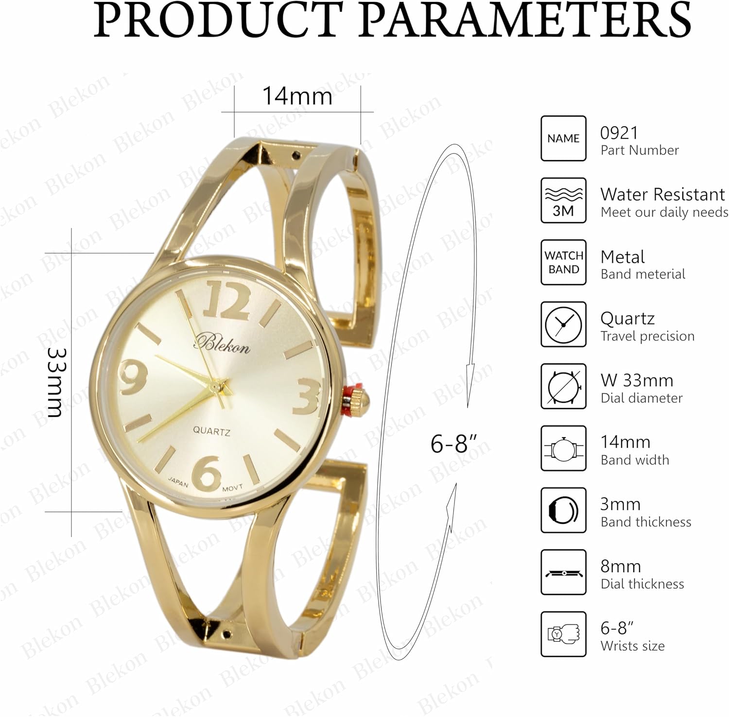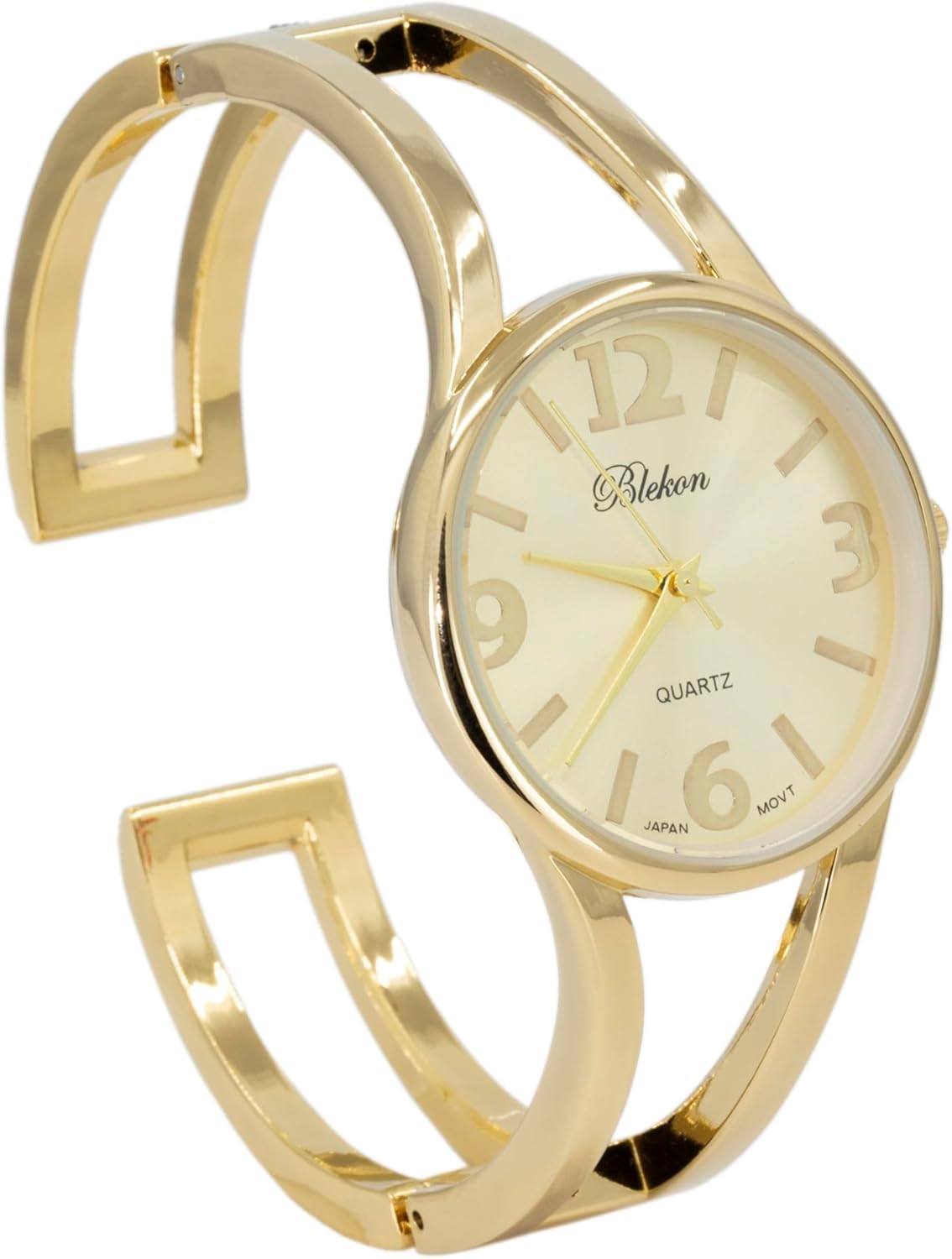 Blekon Collections Women’s Elegant Analog Quartz Watch – 33mm Case, Casual Metal Cuff Bangle Design, Adjustable Fit for 7-8 Inch Wrist Size