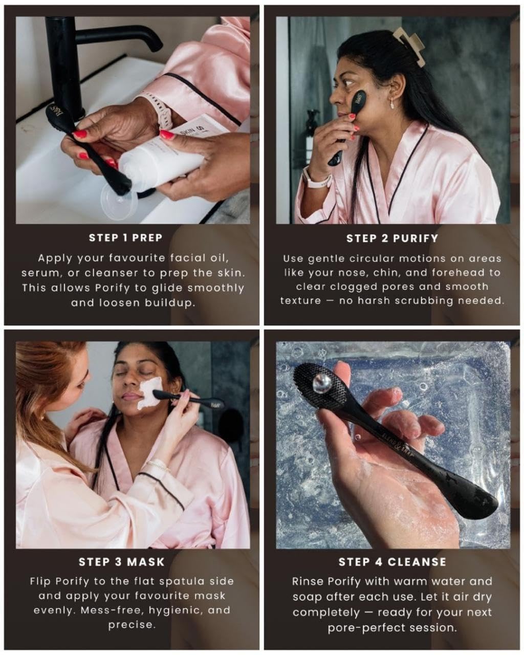 2-in-1 Skincare Tool – Use Porify to deeply cleanse pores or smoothly apply face masks with ease. Use the brush side for cleansing and the flat end for precise, even mask application.