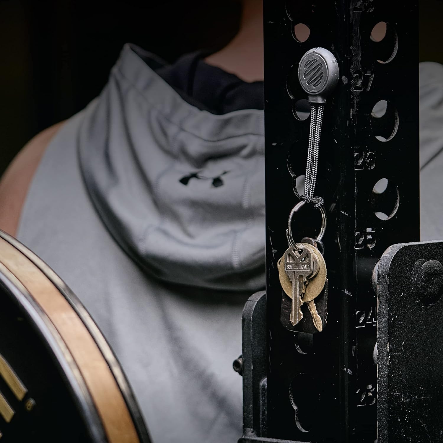 Hang shaker bottles, water bottles, towels, and keys to keep your items in reach and off the floor
