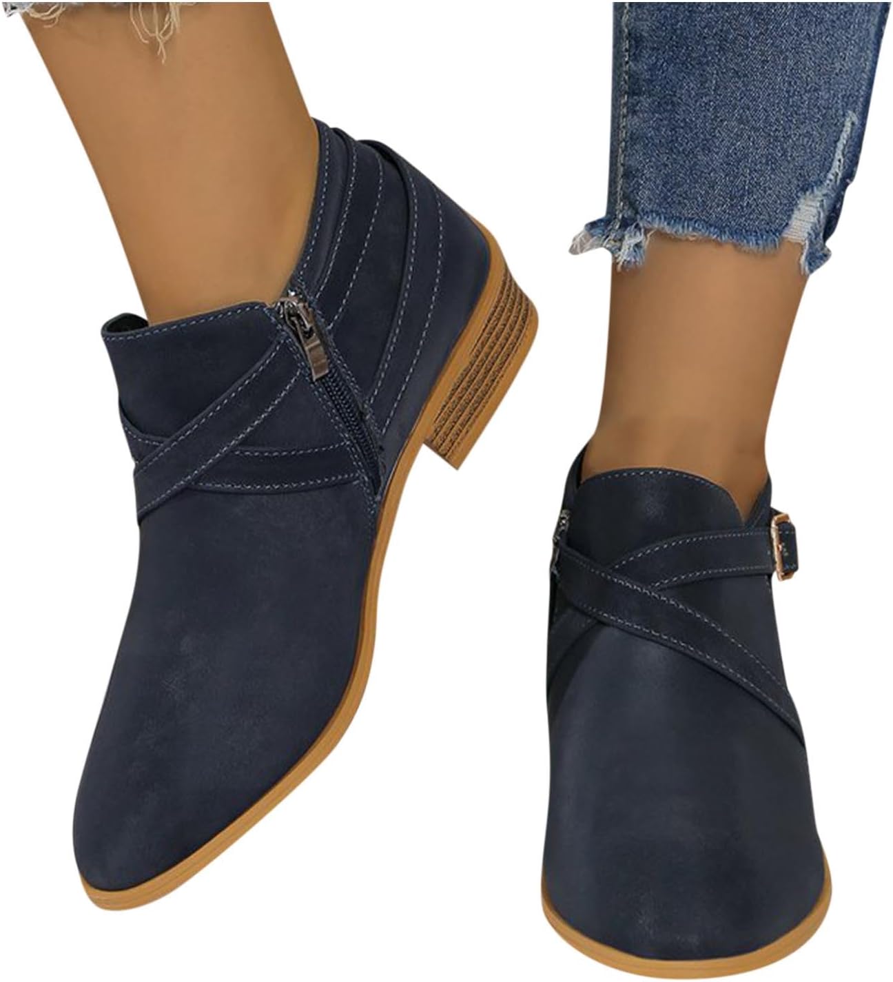 Women’s Chunky Heel Ankle Boots Pointed Toe Casual Booties Side Zipper Comfort Low Block Heel Shoes for Fall Winter