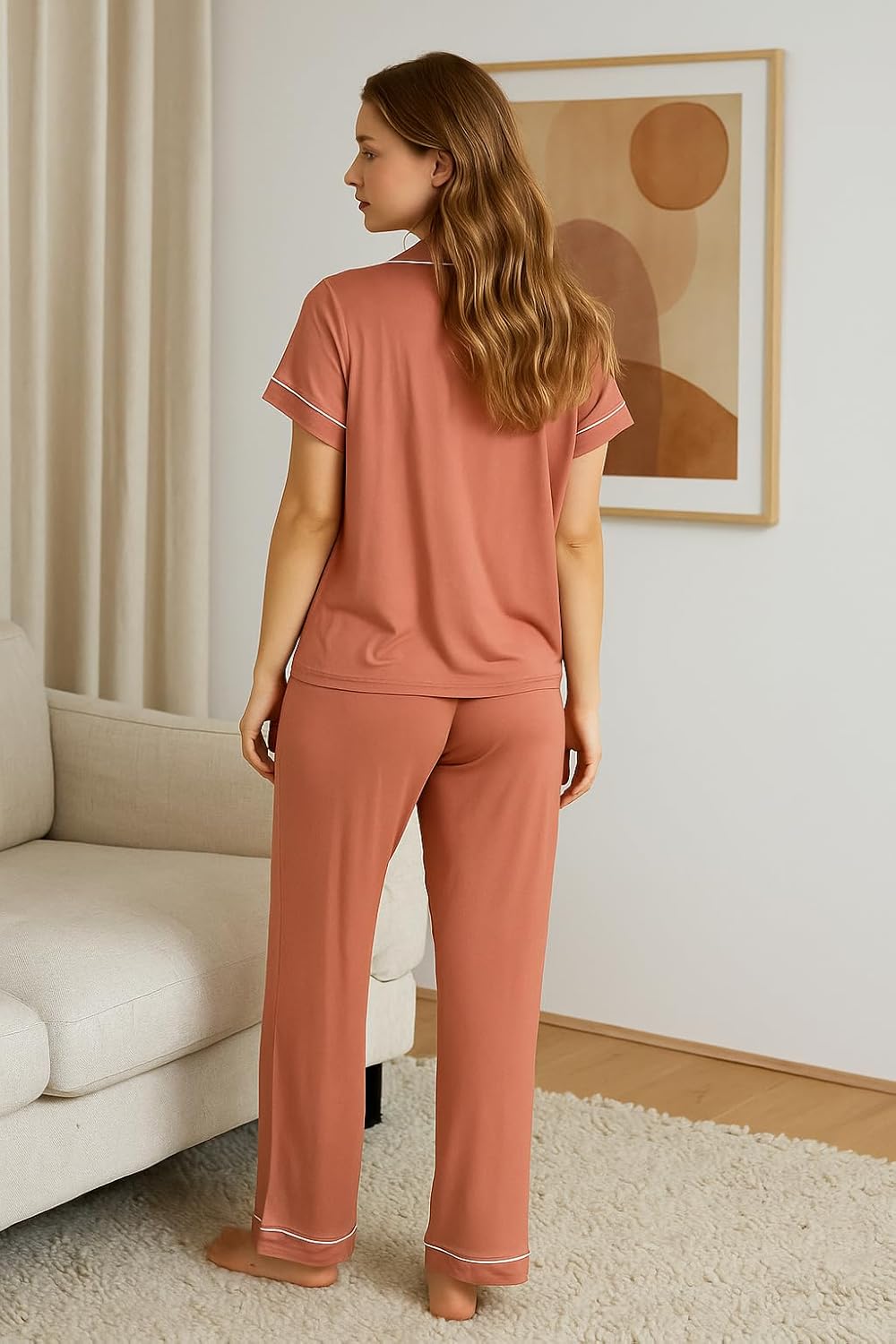 BORN Womens Button Down Pajama Set, Short Sleeve PJ Set with Pants | Soft & Breathable