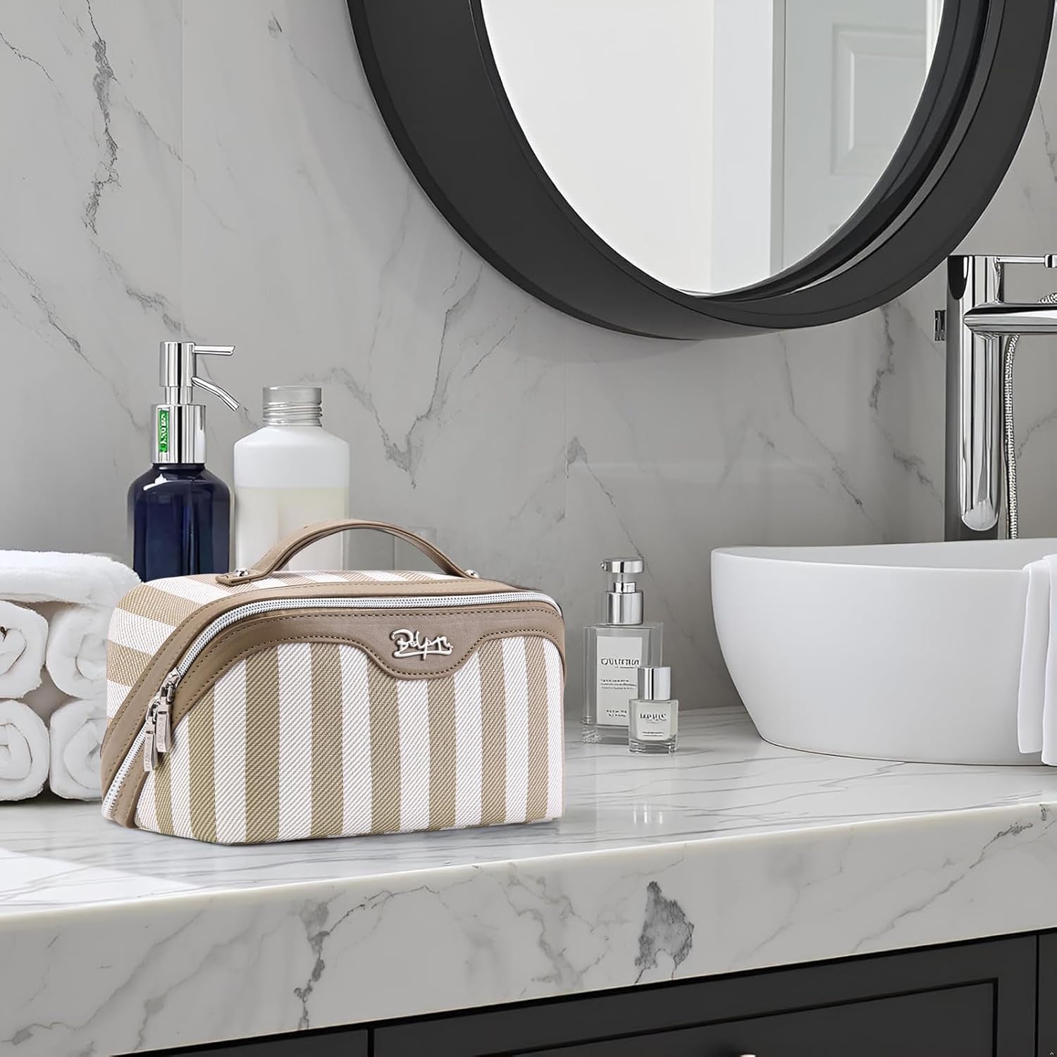 Trendy Makeup Bag for Women: This make up bag is made of premium PU leather, soft to the touch, Waterproof & Durable & Stylish. Simple Stripes appearance design will bring you countless awesome compliments. BOYATU travel cosmetic bag is a great choice and ideal companion for you.