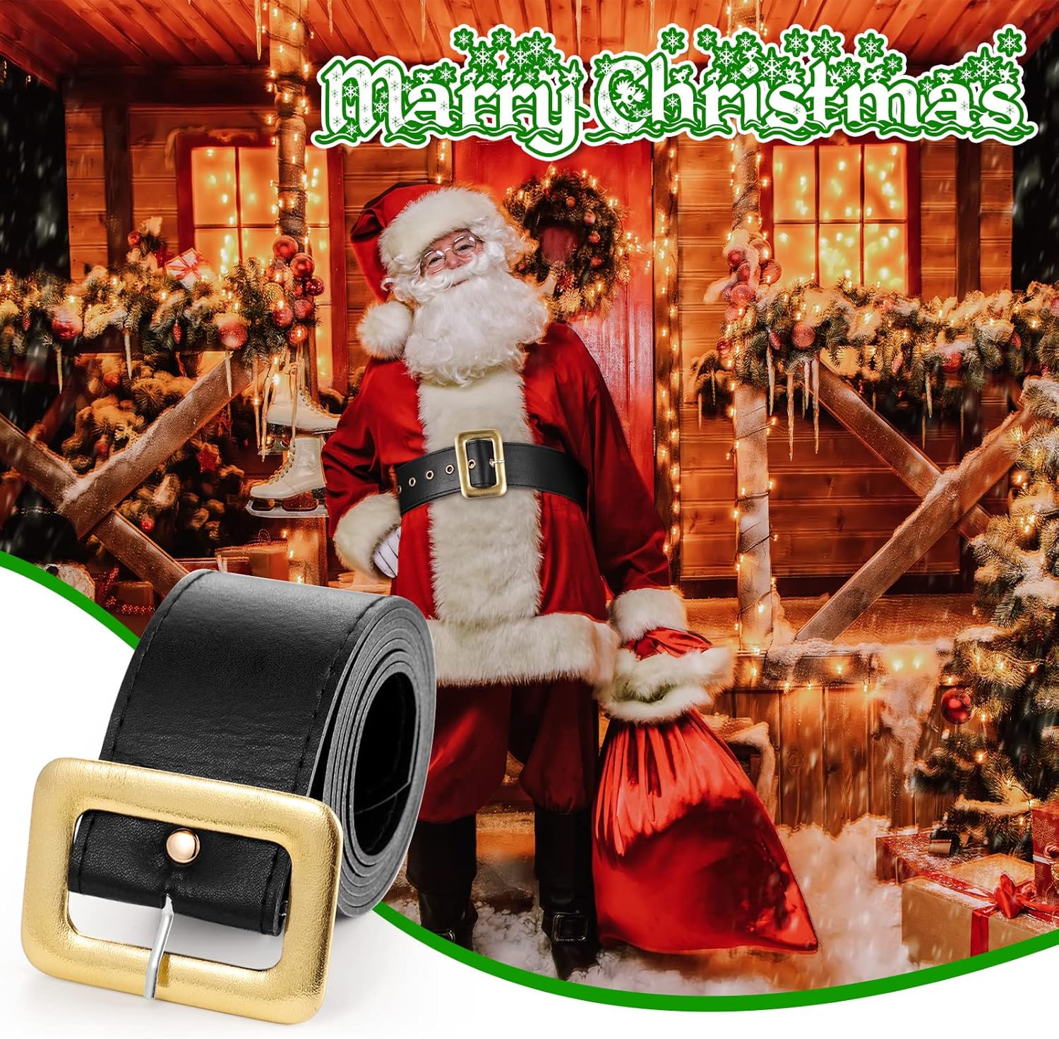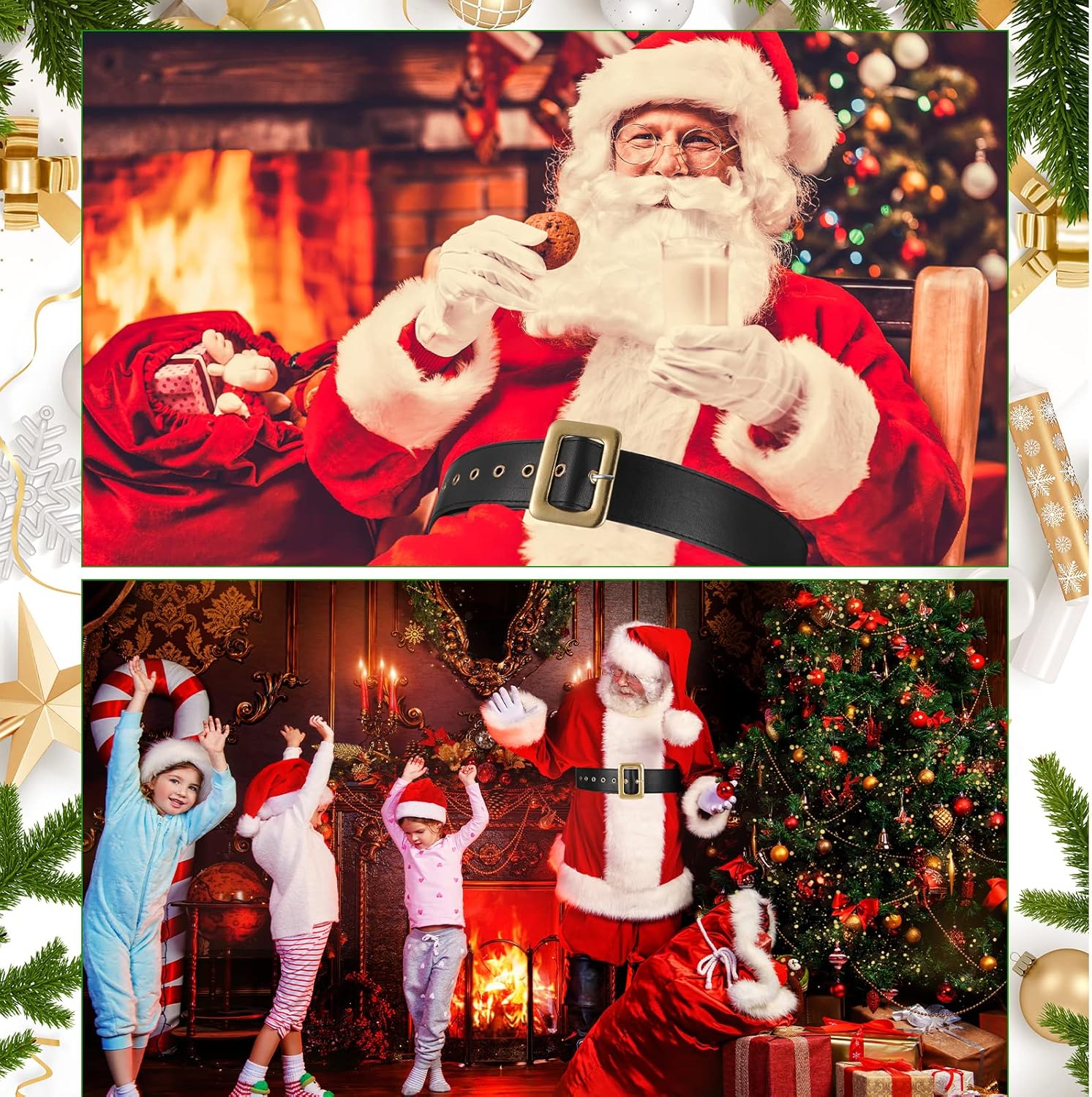 Boyiee Santa Claus Belt Pirate Belt Black with Gold Buckle for Adults Christmas Cosplay Party Costume Accessories