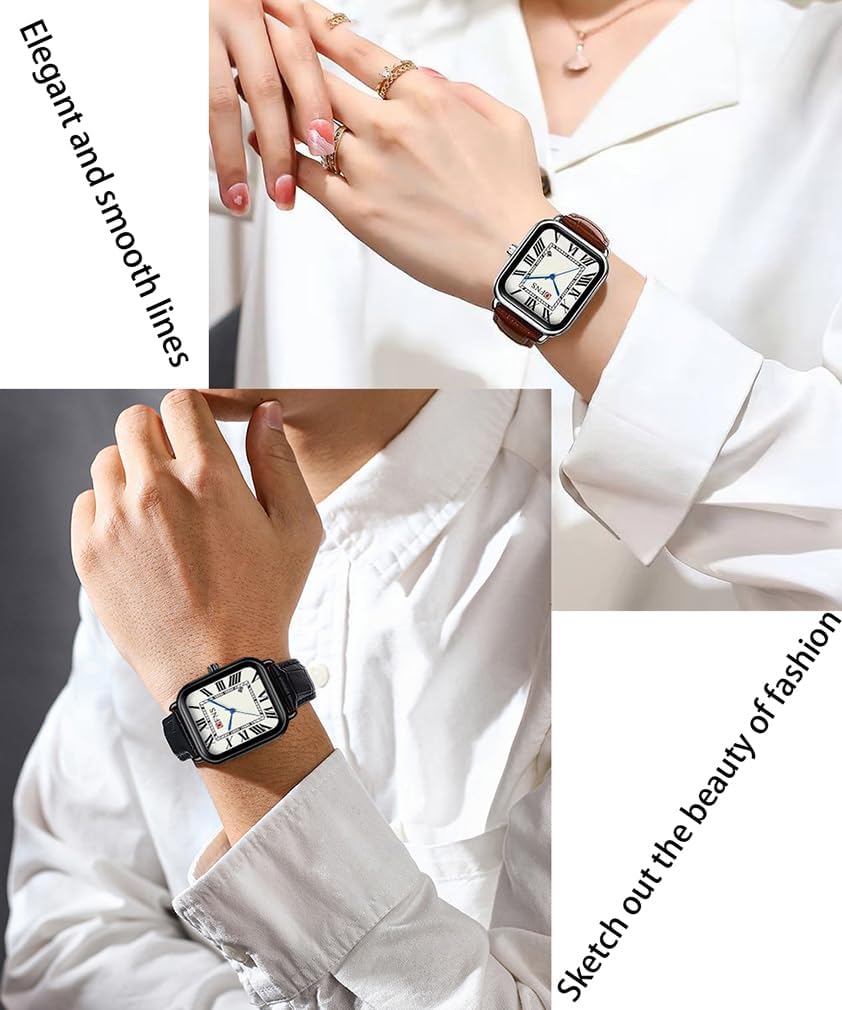 Business Casual Watch for Men Women Retro Square Quartz Watch Roman Numerals 3ATM Water Resistant Leather Strap Alloy Case Date Night Daily Use Multiple Colors