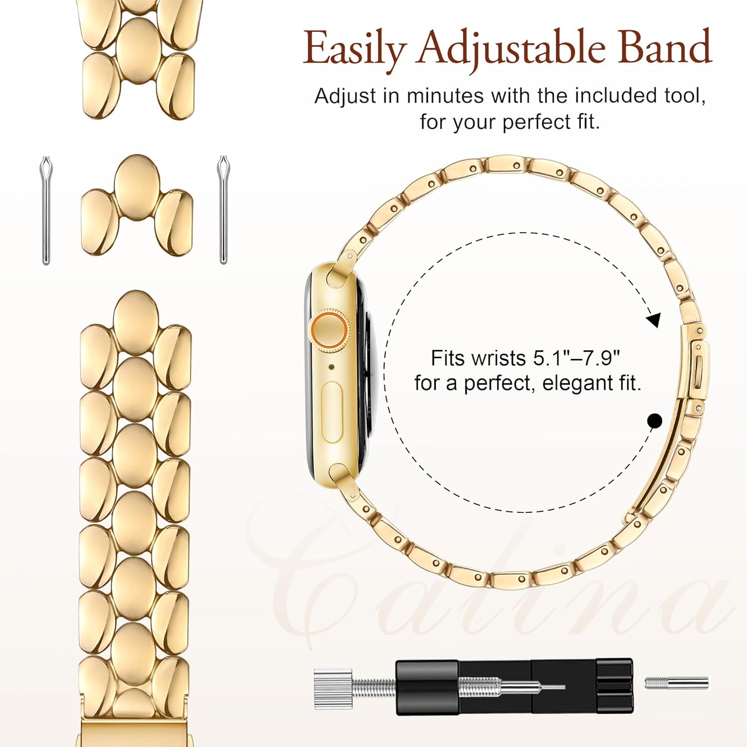 [Easy Length Adjustment] Designed for wrists from 5.1” to 7.9”, the iWatch bands for women adjust easily for your perfect length, with a removal tool and simple guide included for quick sizing. The upgraded folding clasp opens smoothly and closes securely, keeping your watch steady from morning to night.