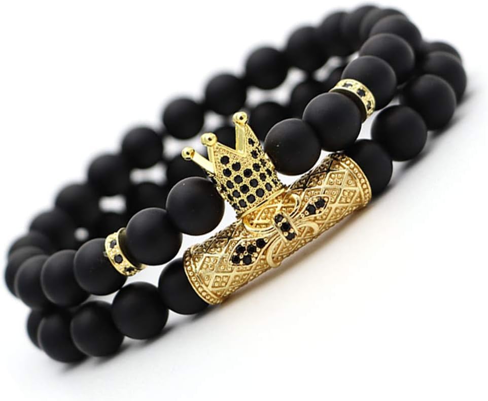 CASDAN 4 PCS Bracelets for Men Women Friendship Lava Stone Crown Bead Bracelets 8MM Natural Essential Oil Diffuser Beads Bangles Gifts