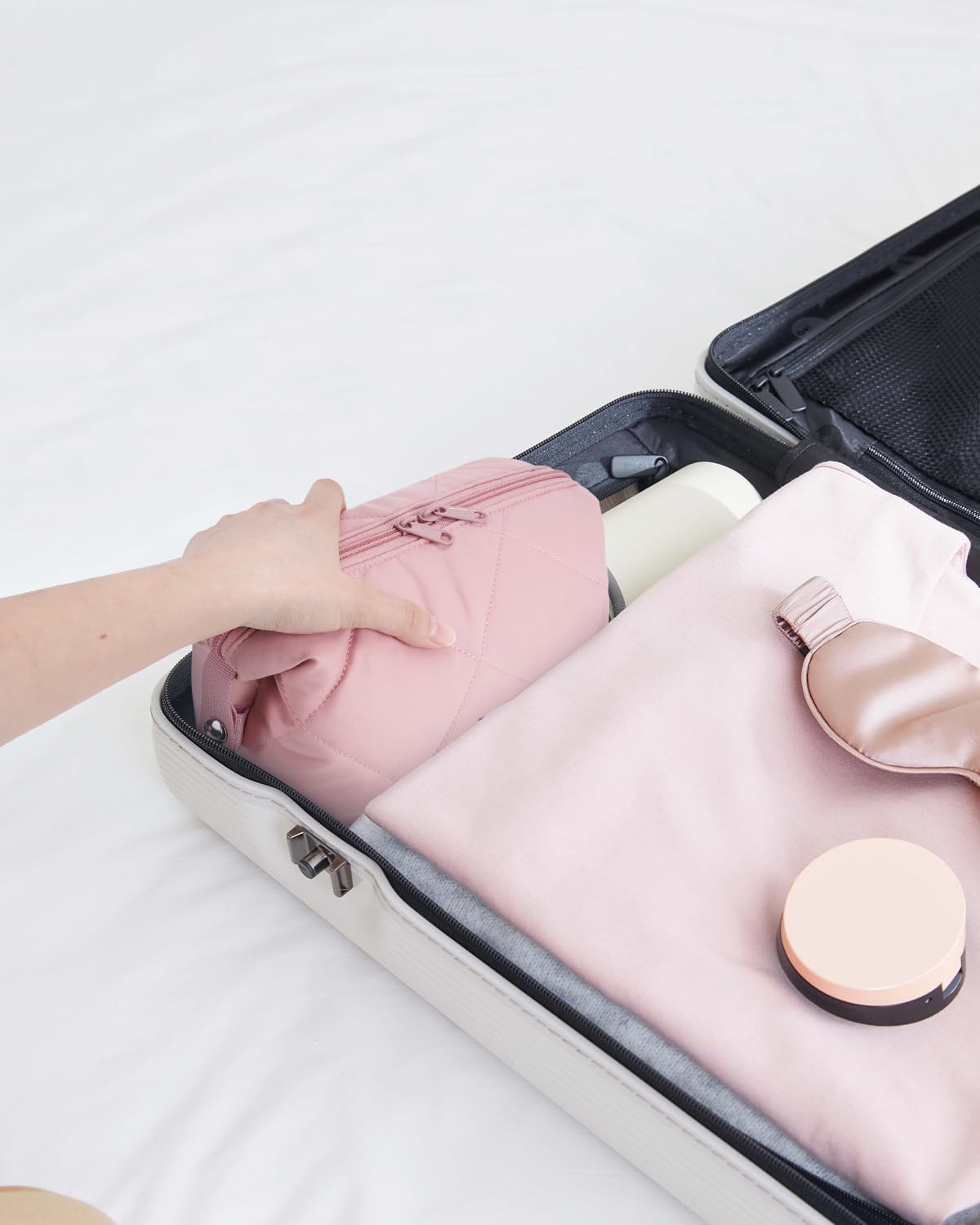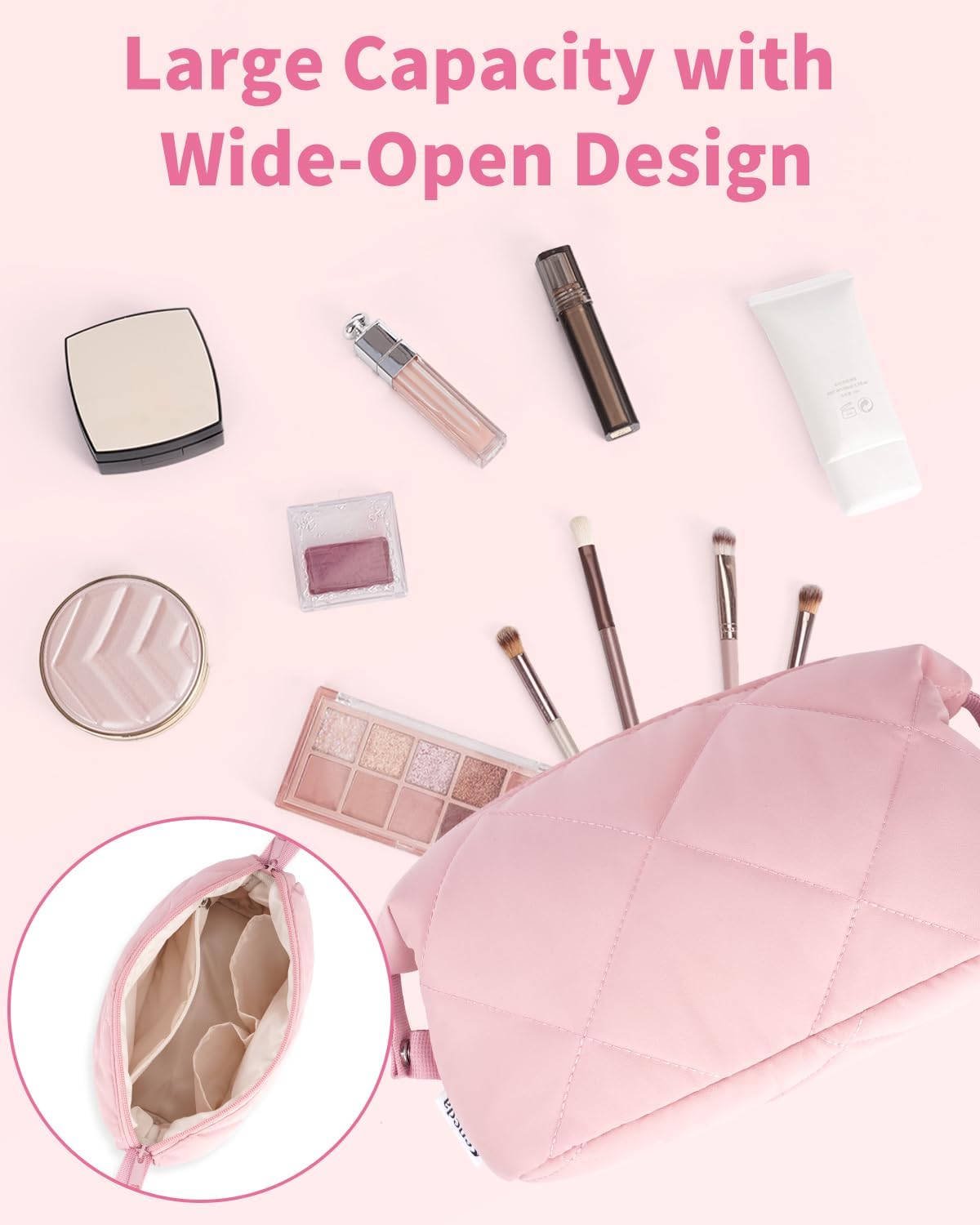 Wide-Open Design: The wide-opening design of this makeup pouch ensures easy access to all your beauty essentials. No more rummaging through small cosmetic pouches—this women’s toiletry bag lets you effortlessly locate items like lipstick or eyeshadow in no time. (Patent pending)