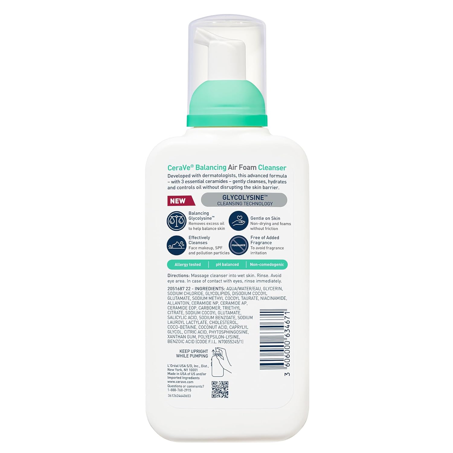 CeraVe Balancing Air Foam Face Wash, Foaming Facial Cleanser For Combination Skin, 8HR Oil Control + 24HR Hydration, Fragrance-Free & Non-Comedogenic, With Glycolysine™ & 3 Essential Ceramides, 8oz