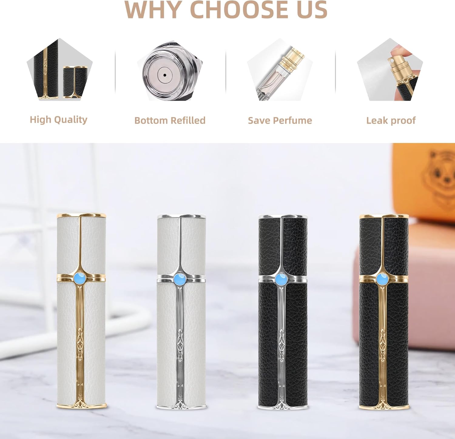 SEE-THROUGH & LEAK-PROOF: Features a shatterproof transparent inner liner for easy monitoring of perfume levels, paired with a bottom-fill system for mess-free refills. The airtight seal ensures zero leakage, while the durable construction resists drops and daily wear—perfect for travel or everyday use.