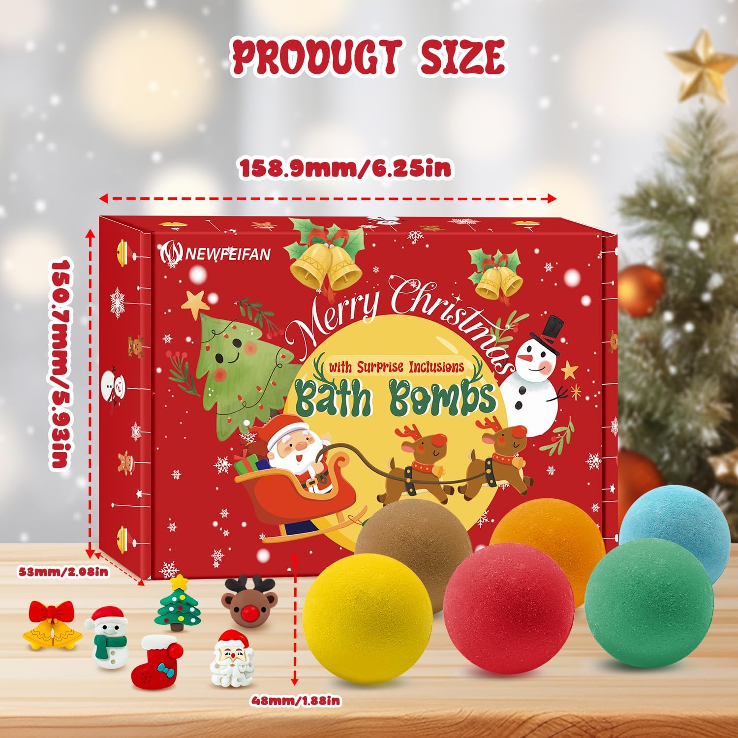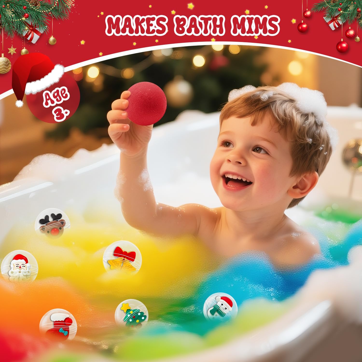 Christmas Bath Bombs for Kids -6 Pack Organic Surprise Toys Inside, Gentle Formula Creates Rainbow Bubbles, Perfect Holiday Gifts and Stocking Stuffers for Children Girls Boys