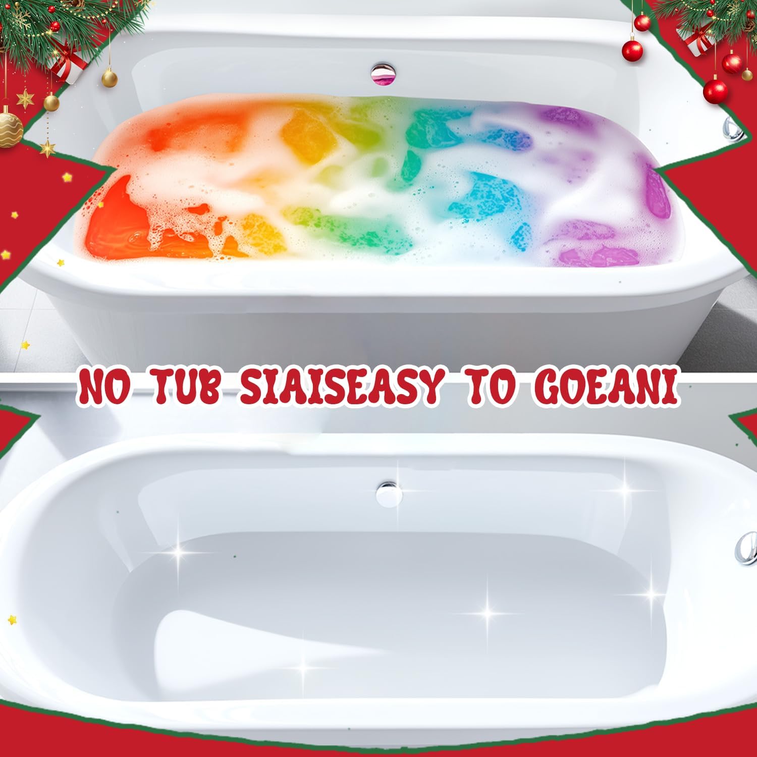 CHRISTMAS THEME Creates Vibrant Rainbow Bubbles for Festive Baths – When placed in warm water, the bath bomb fizzes and releases colorful rainbow bubbles, turning an ordinary bath into a magical, festive scene. The bright hues add joy and cheer, perfectly matching the Christmas spirit.
