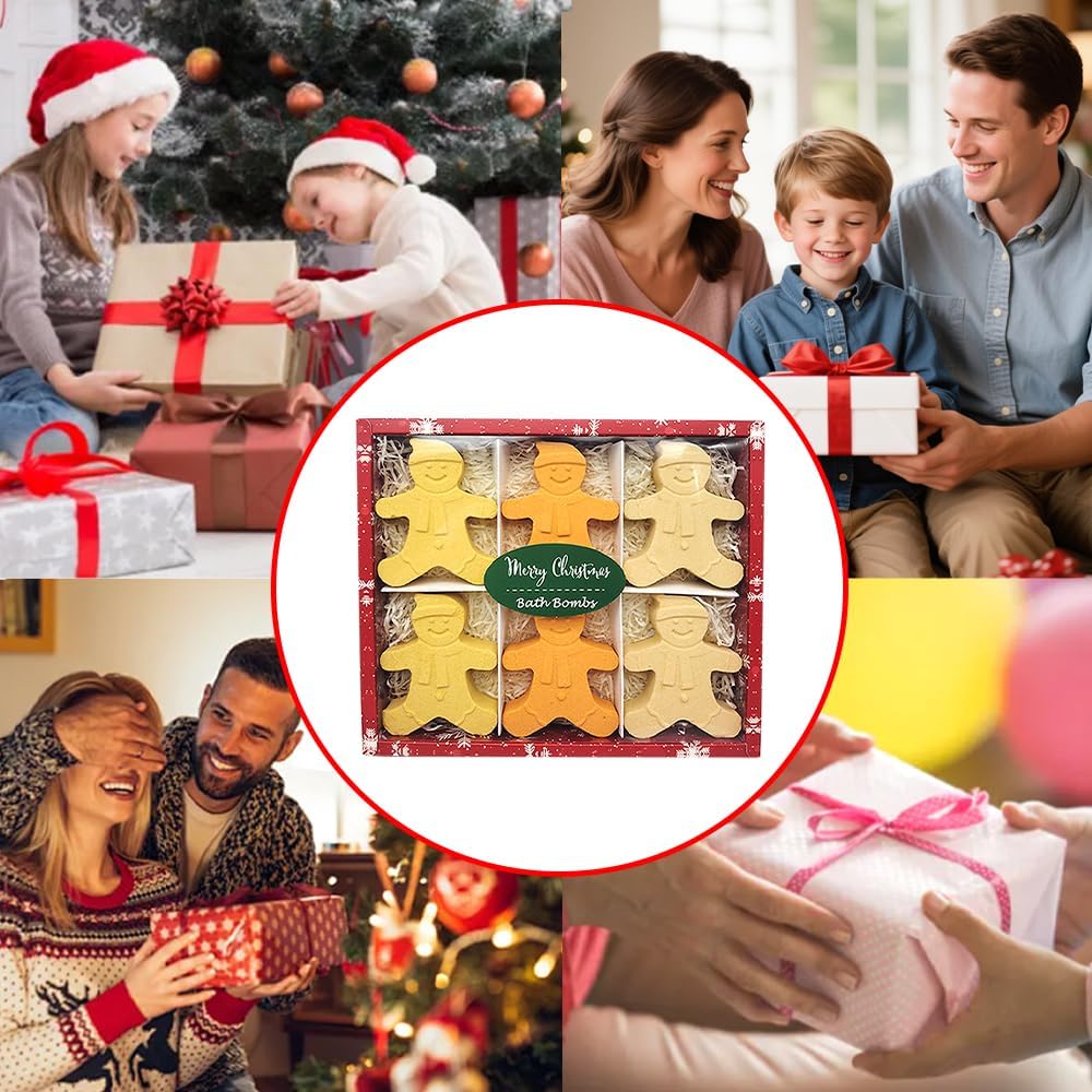 Christmas Bath Bombs Gingerbread Man, Handmade Bath Bomb Gift Set Perfect as Stocking Stuffers for Kids and Christmas Gifts for Women