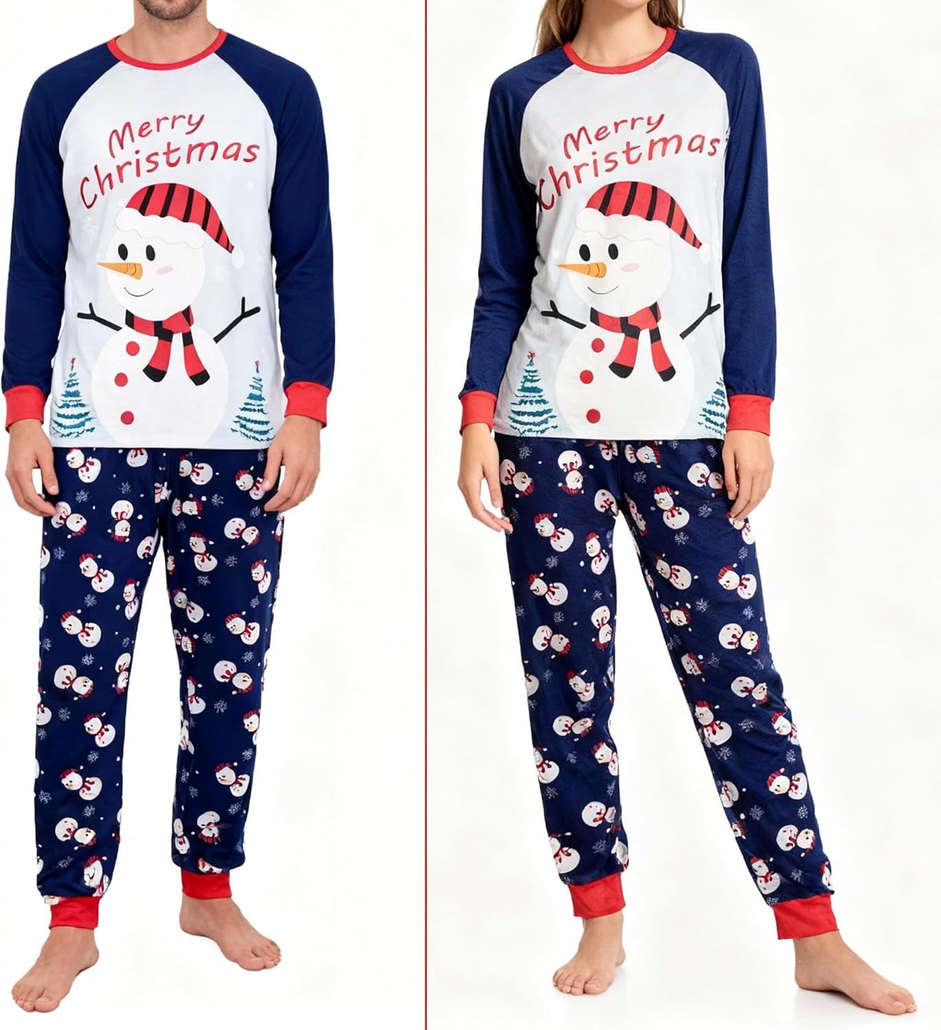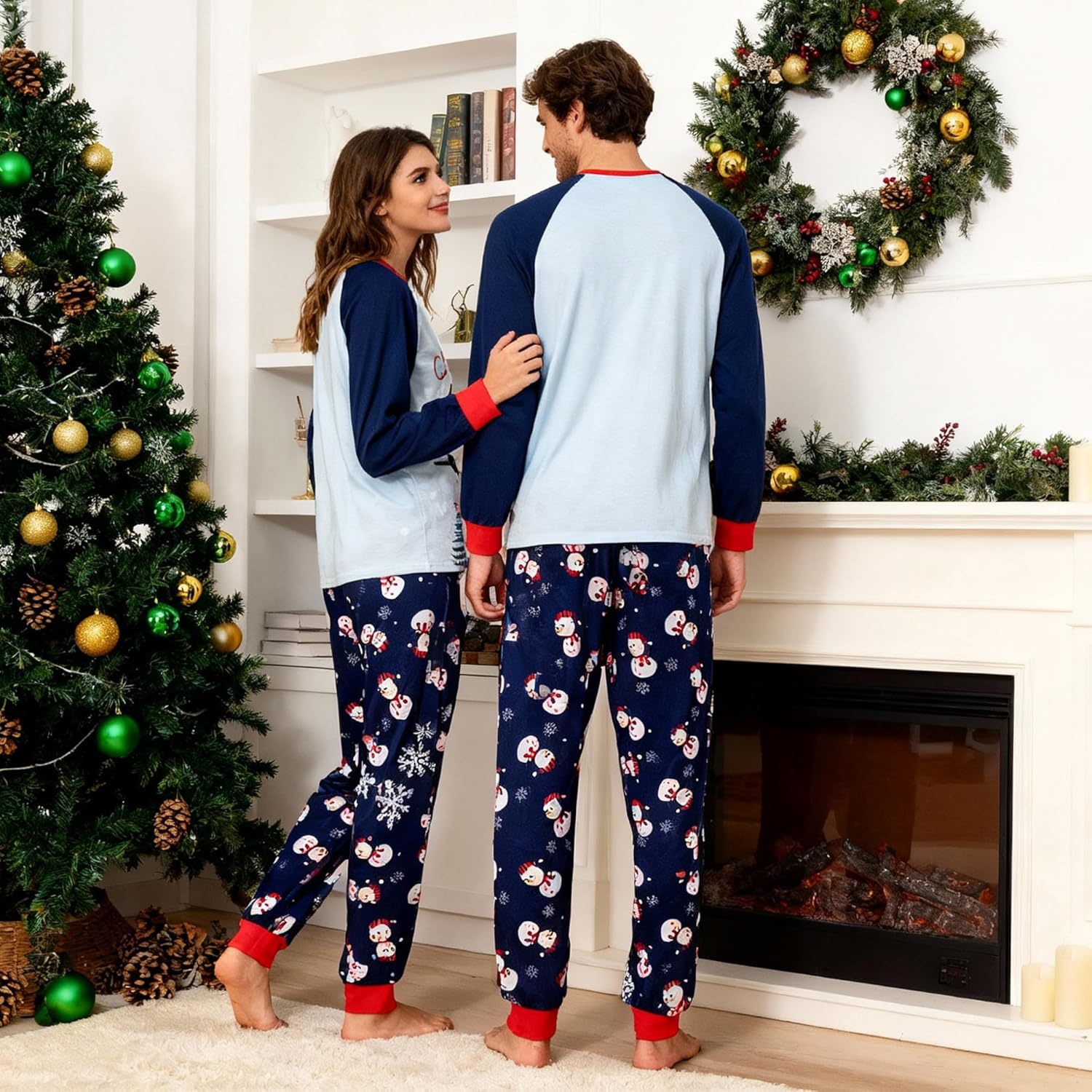 Christmas Matching Pajamas Set for Couples Snowman Santa Claus Print Long Sleeve Sleepwear for Women Men