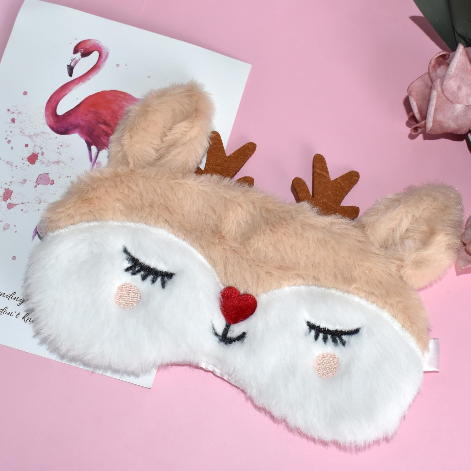 Christmas Reindeer Sleeping Mask Eye Mask Cute Animal Rudolph Sleep Mask Soft Plush Blindfold Funny Eye Cover Eyeshade for Kids Adults Girls Boys Women Men (Reindeer, White)