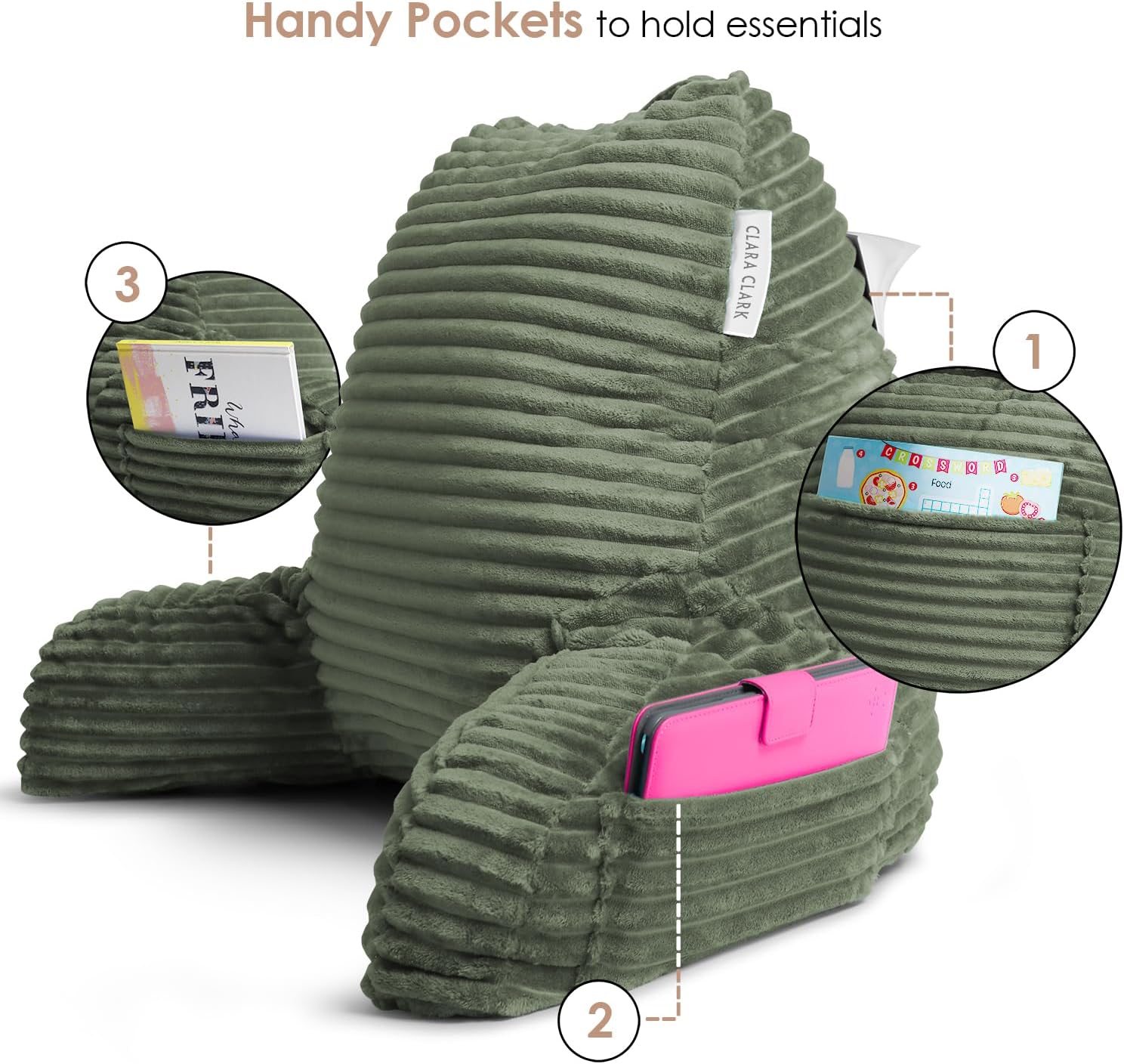 Clara Clark Reading Pillow for Bed Adult – Back Pillow for Sitting in Bed, Standard Bed Pillows for Sitting Up in Bed, Foam Bed Chair Pillow, Olive Green Bed Rest Pillow
