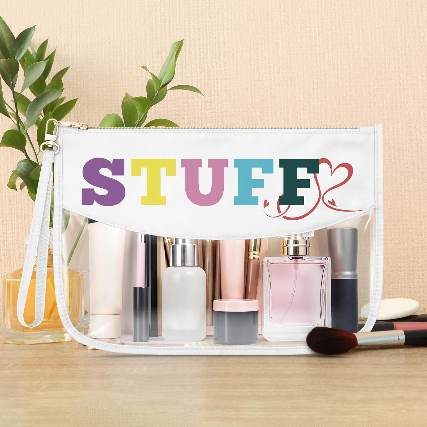 Clear Letter Makeup Bag for Women:The transparent cosmetic bag is printed with the word “STUFF” on it, and the design is simple and very cute. Suitable for mom, grandma, friend, daughter, friend, classmate, colleague, etc.