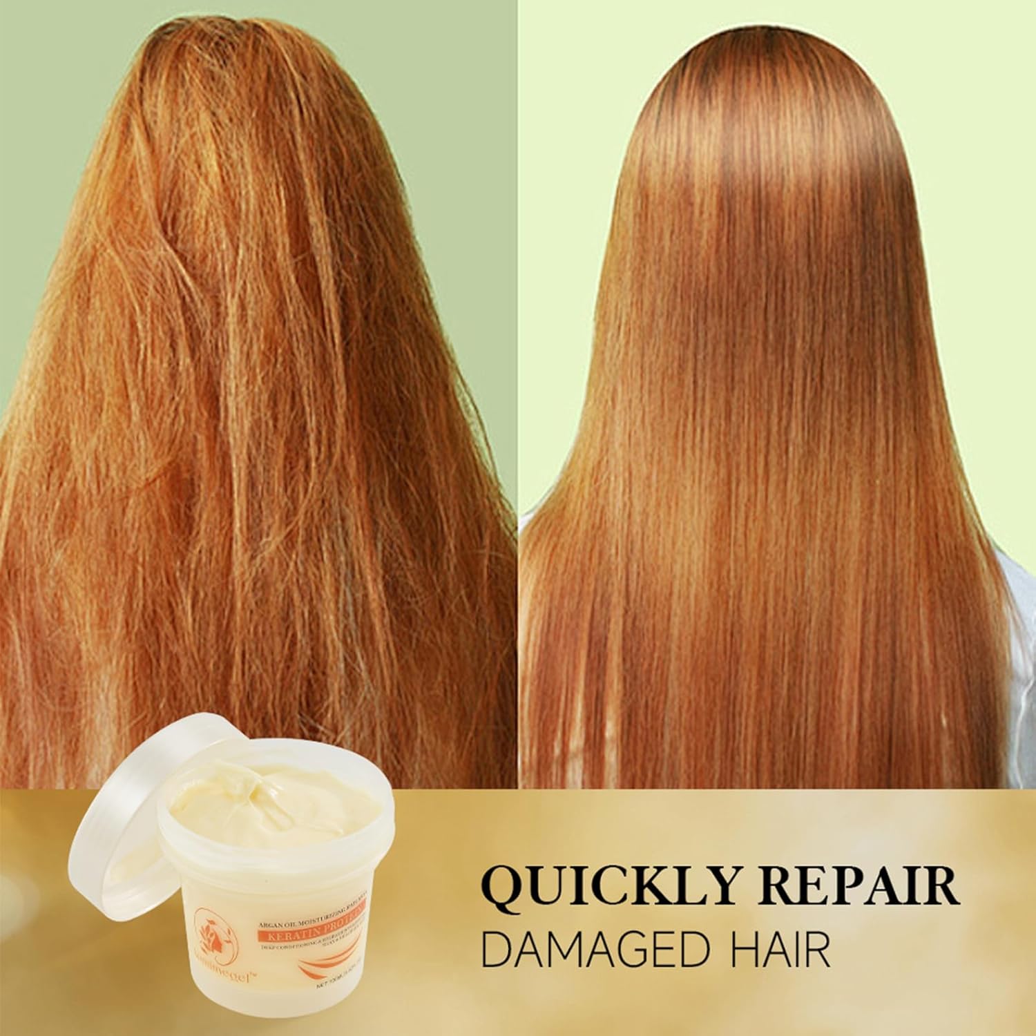 【Powerful Blend of Premium Ingredients】Infused with Collagen, Keratin, and Moroccan Argan Oil, our hair treatment deeply penetrates each strand to rebuild protein structure and restore lost moisture. This luxurious formula absorbs quickly without any heavy, greasy, or sticky residue, leaving your hair feeling incredibly soft and silky from the very first use.