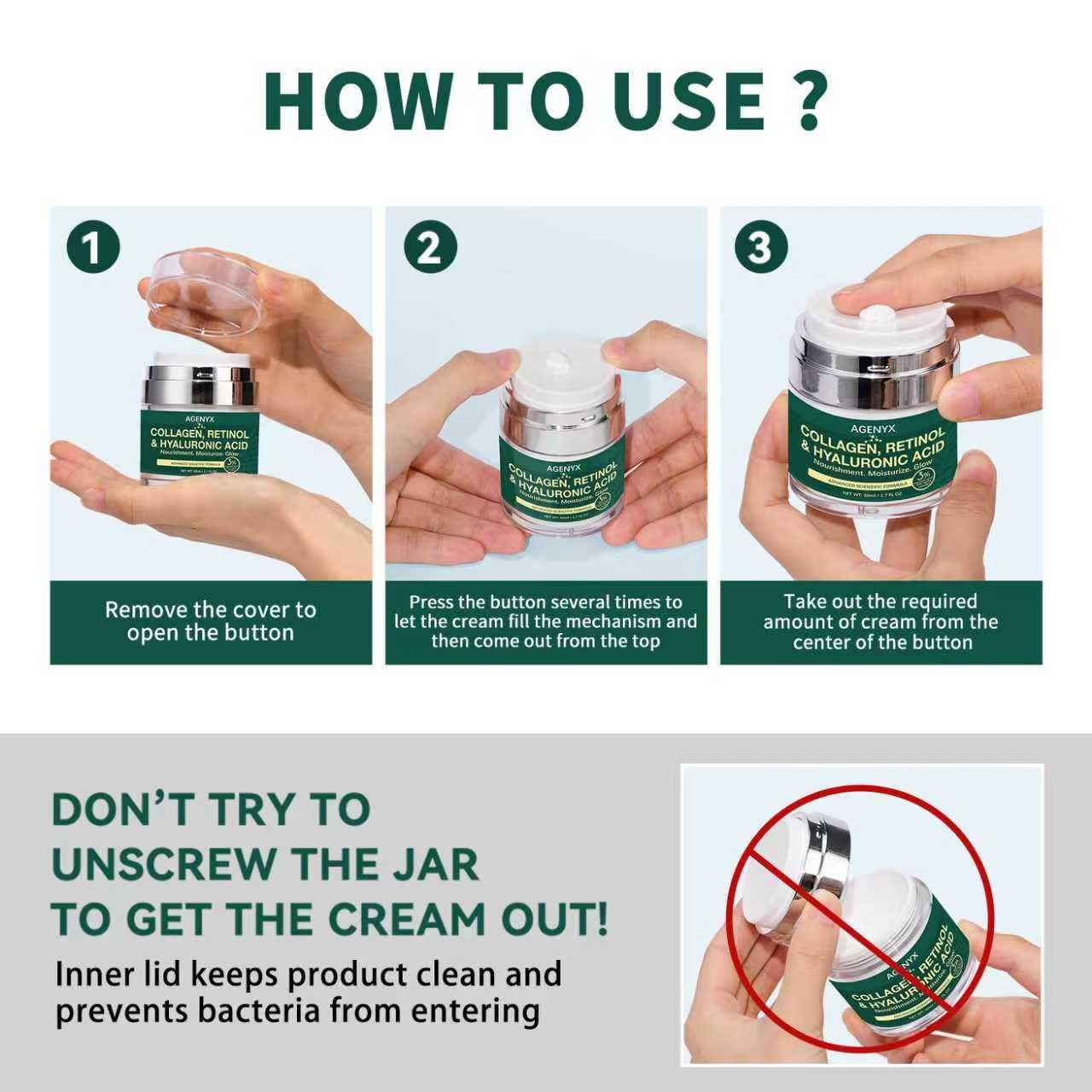 Works as an anti-aging cream, face lift cream, neck firming cream, collagen moisturizer, retinol cream, wrinkle repair cream, skin tightening cream, anti-wrinkle face cream, and hydrating facial lotion all in one. Perfect for women and men seeking an effective anti-aging skincare solution or a tretinoin cream alternative. Excellent for both daytime protection and nighttime recovery.