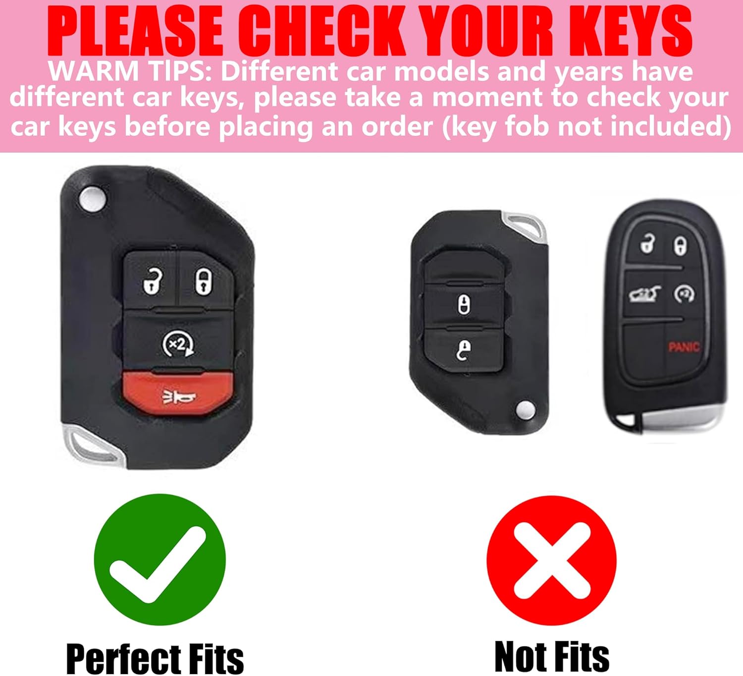 Fits Model: Only compatible with Jeep Wrangler JLU JL Sahara (2018 2019 2020 2021 2022 2023 2024) and Jeep Gladiator Rubicon JT (2020 2021 2022 2023) flip remote control smart key 4 buttons. (Note: The car model is for reference only. Please compare your car key shape and button patterns with the 2nd picture before purchasing.)