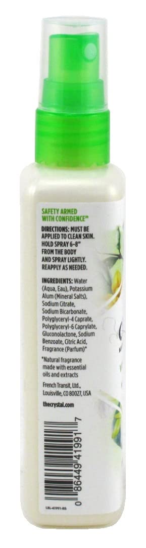 Infused with sweet, lush Vanilla & Jasmine, this powerful mineral spray dries quickly. CRYSTAL touch-free spray allows for easy application without touching or rubbing.