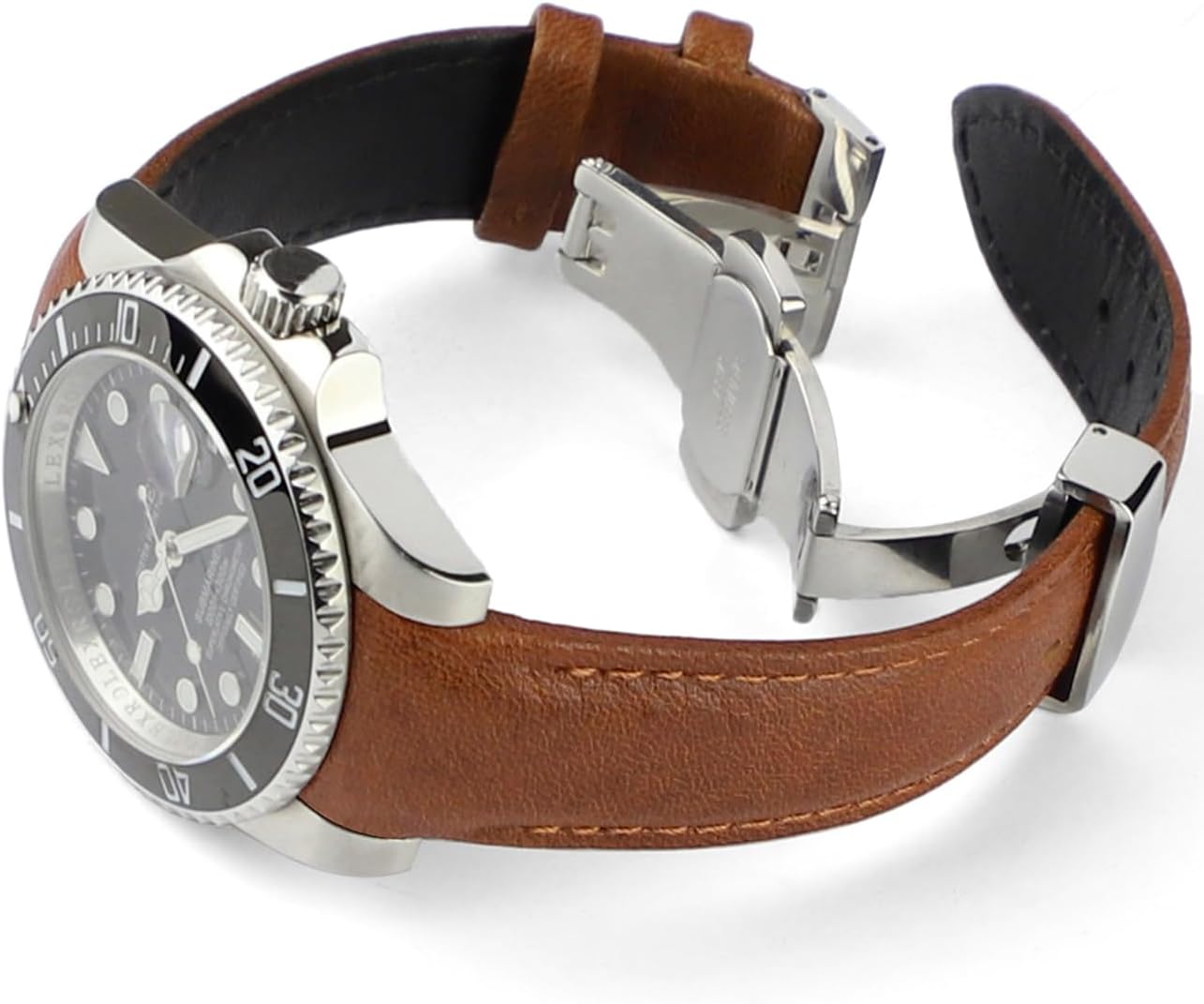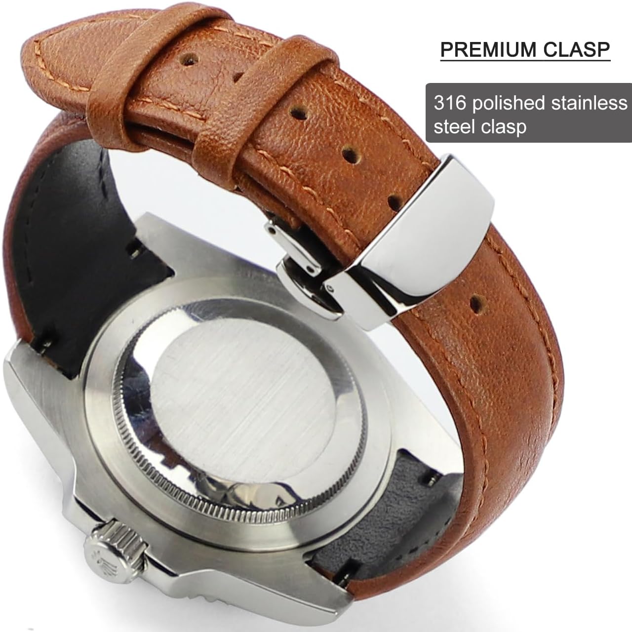 Curved End Retro Leather Watch Band for Rolex Submariner, Daytona, GMT-Master, Yacht-Master, Explorer I