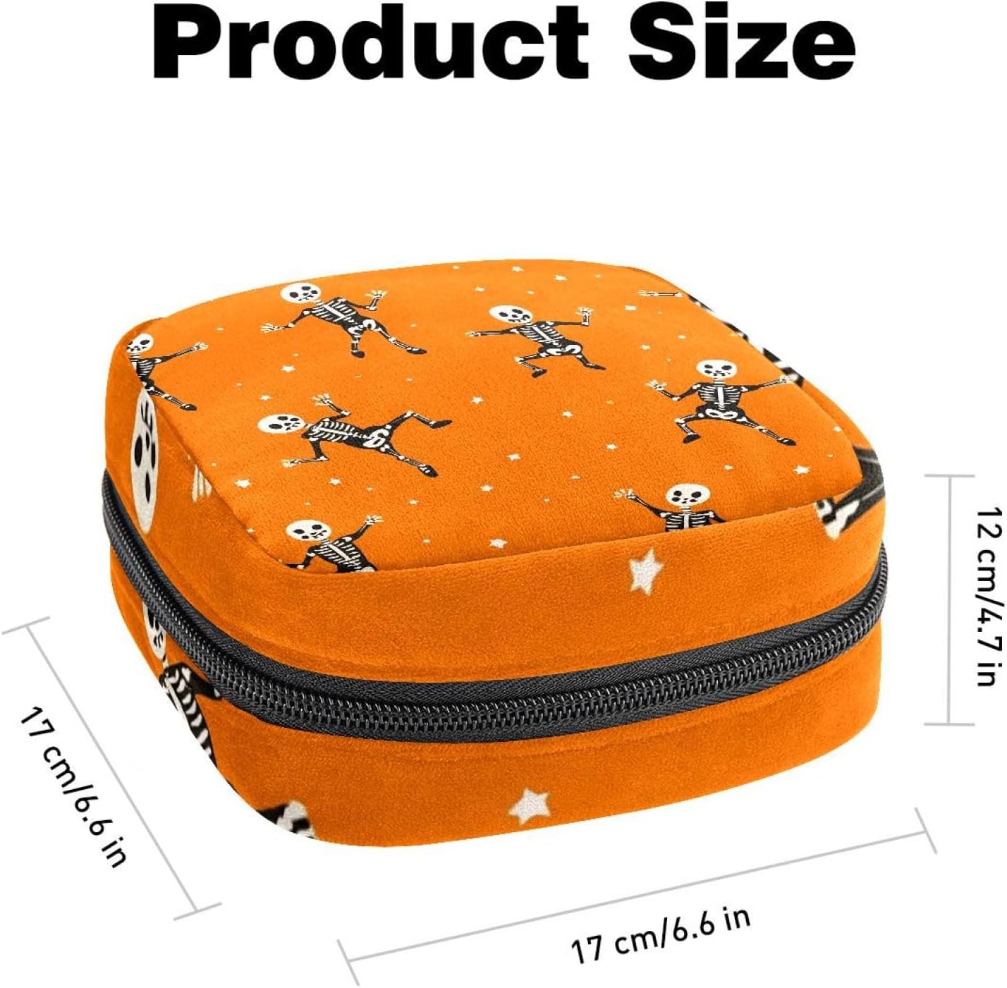 Size – 6.6*6.6*4.7 inch/17x17x12 cm, compact size and easy to carry, easily put in backpack or handbag when school, work, travel. The period bag can hold up to 10 pieces sanitary napkins, enough for one day’s replacement, a small compartments inside for small sanitary napkins.