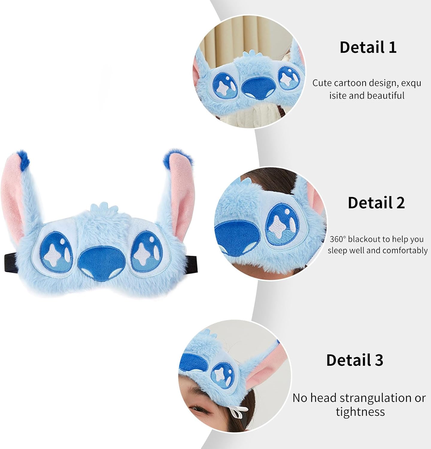 Cute Eye Masks for Sleep Cartoon Plush Blindfold Soft Funny Travel Eye Cover for Women Girls (Blue)