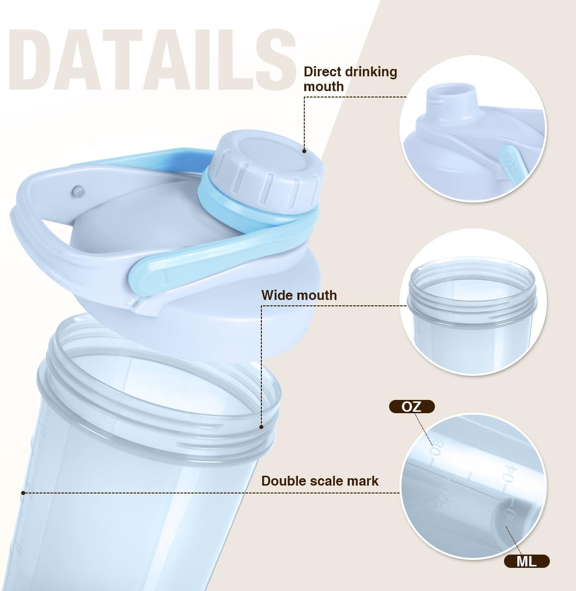 【Wide mouth & Double Scale Mark】:it is easy to add mix scoops and liquids, and embossed markings measure both ounces and milliliter
