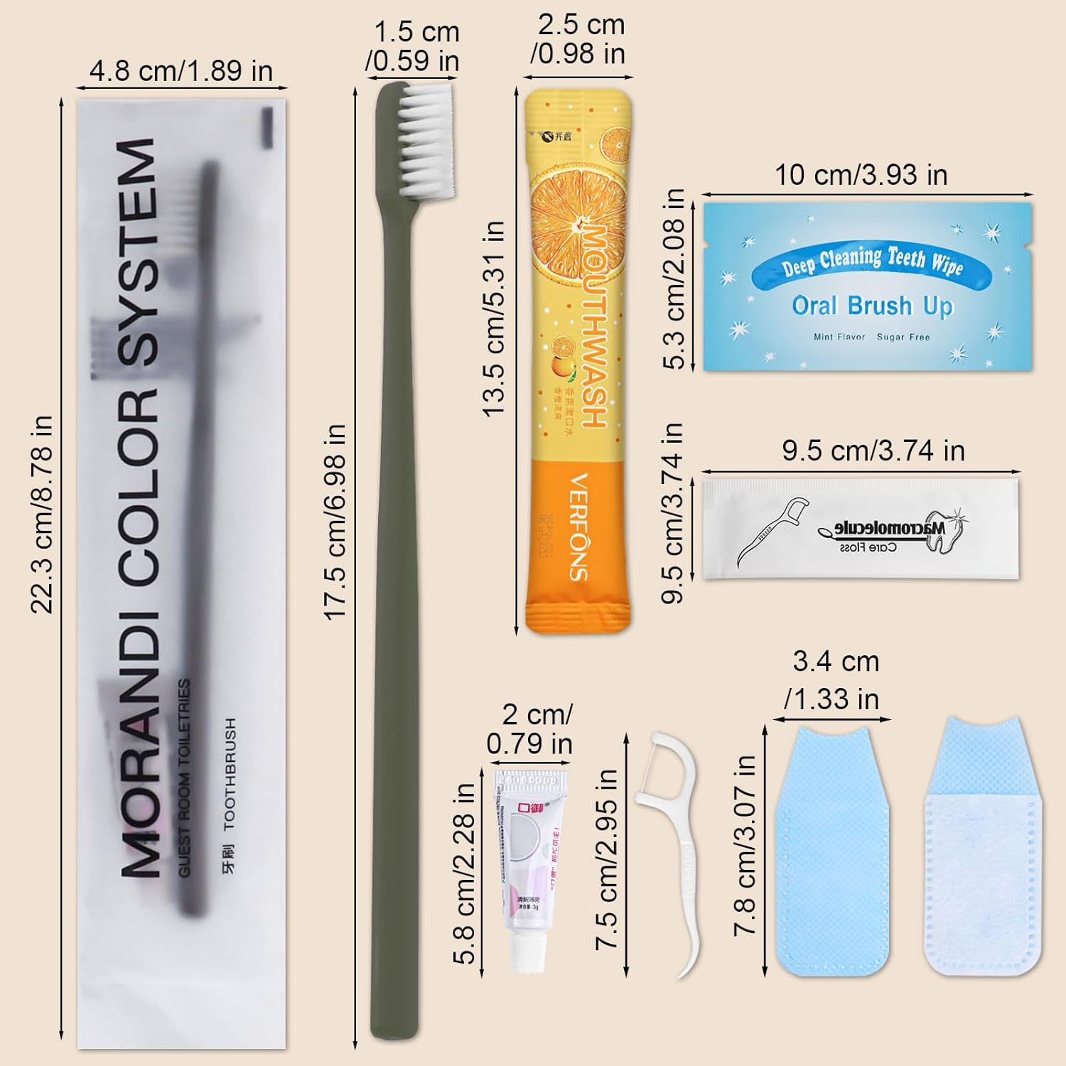 INDIVIDUAL PACKAGING: The dental hygiene kit travel is individually packaged. Not only is it convenient to carry them separately. It also ensures that they are clean and have never been used.