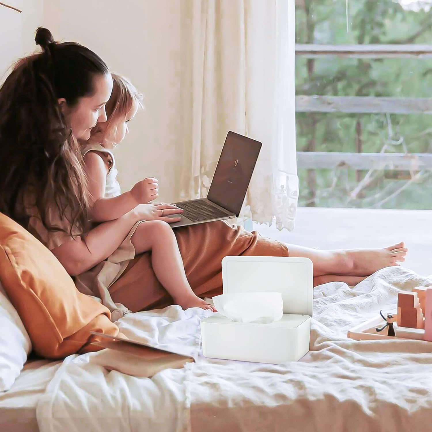 Diaper Wipes Dispenser Wipes Holder, Wipes Tissue Case Keeps Wipes Fresh Tissue Wipes Container with Lid (White)