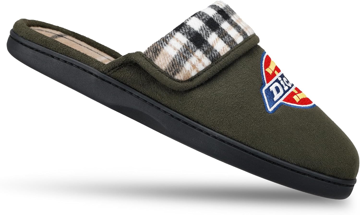 Dickies Men’s Slide-on Memory Foam Scuff Slipper with Embroidered Logo-Indoor/Outdoor Sole